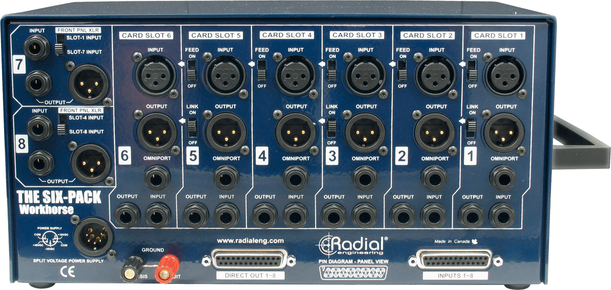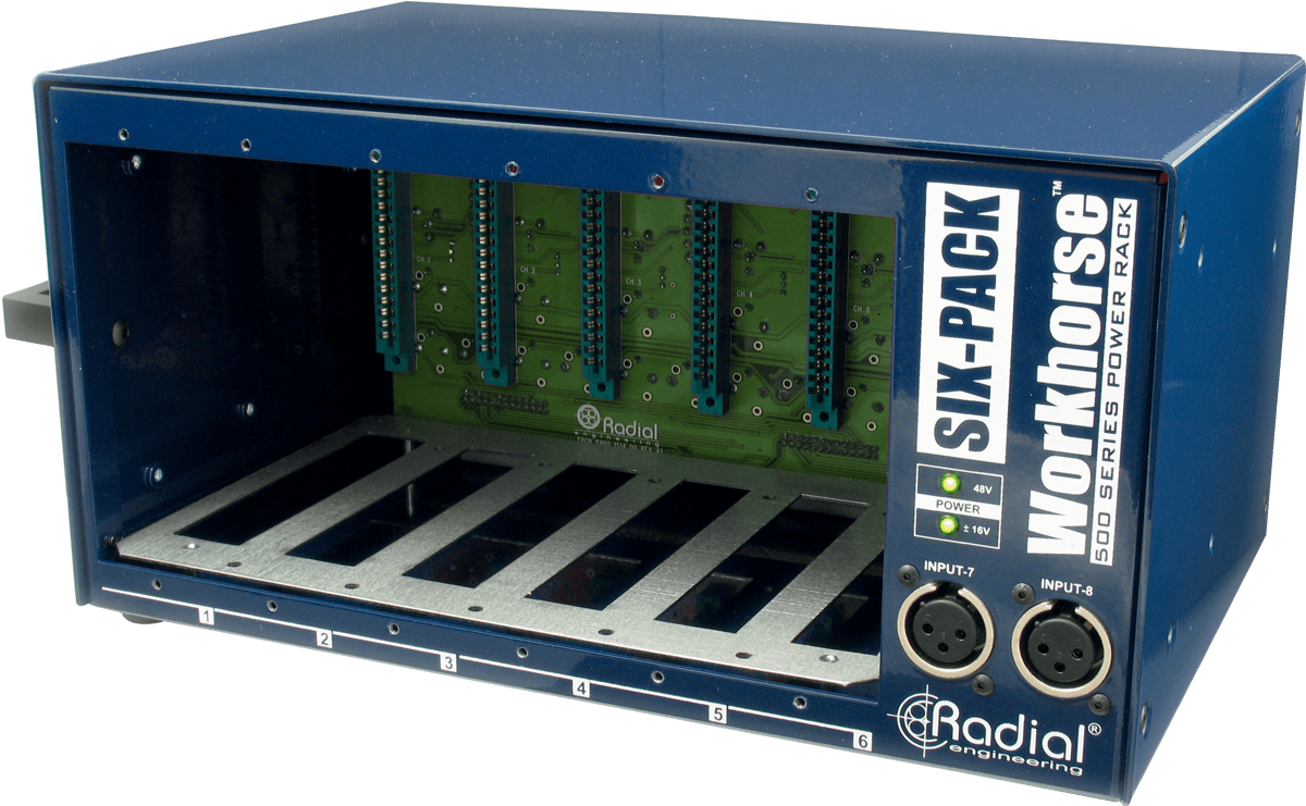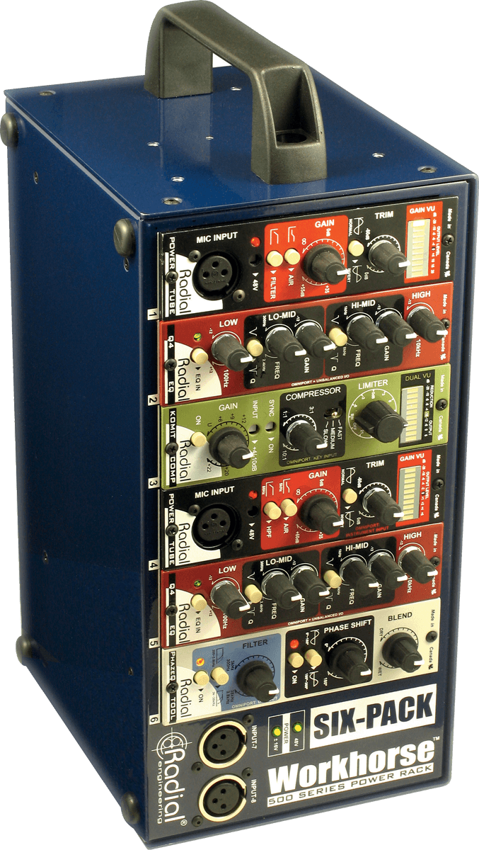 Comme tous les rack modulaire Radial Workhorse, la conception du châssis métal est irréprochable et augure d'une durabilité accrue lors des déplacements dans le studio, tout en offrant une meilleure protection contre les champs magnétiques parasites.