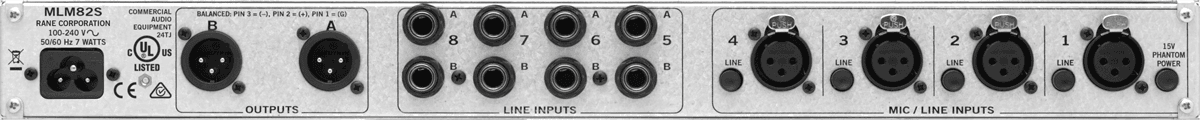 Le Rane MLM82S dispose de quatre entrées XLR symétriques de qualité studio, commutables en position Mic/Line avec alimentation fantôme 15V.