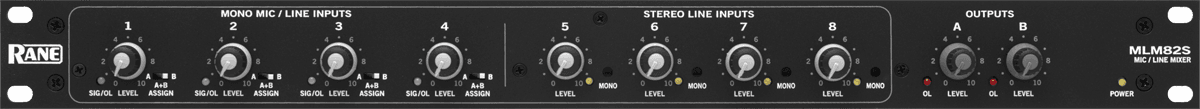 Le MLM82S dispose également de quatre entrées de niveau ligne stéréo avec un gain de ligne de 12 dB.