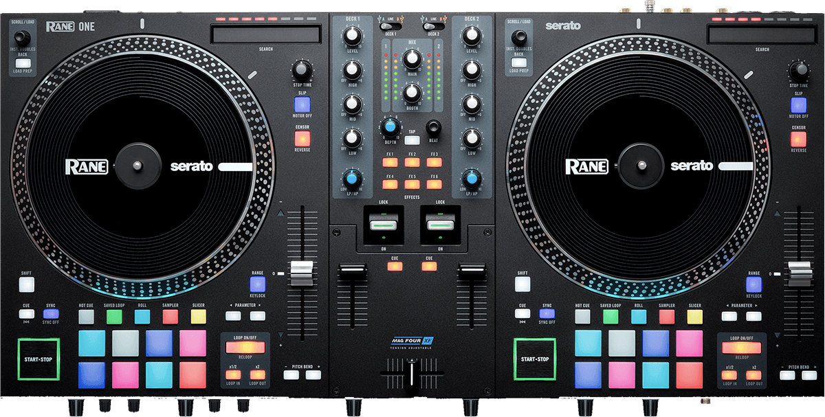 La Rane One est le contrôleur DJ motorisé professionnel ultime, une solution de mixage DJ intégrale comprenant d’authentiques plateaux de platine de 7 pouces motorisés, un crossfader MAG FOUR ultraléger, 6 raccourcis d’effets logiciel à accès rapide pour améliorer vos performances et bien plus, le tout avec la célèbre qualité de fabrication professionnelle reconnue de Rane.