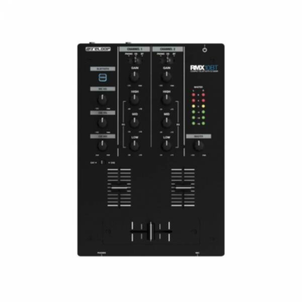 Le RMX-10 BT de Reloop est un mixeur DJ compact à 2 canaux, qui facilite la diffusion de musique sans fil directement sur le mixeur via l'interface Bluetooth intégrée.