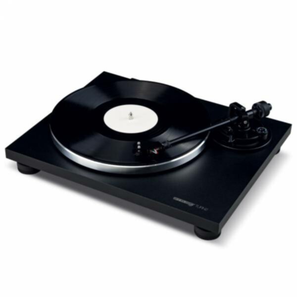 - Accessoires fournis : cellule Ortofon OM10 montée sur porte-cellule, contrepoids, capot avec charnières, feutrine, plateau en aluminium, adaptateur 45T, câble RCA et alimentation externe avec fiches interchangeables internationales (UK / EU / US)