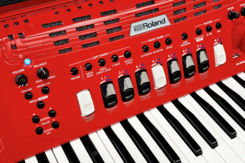 Ou peut-être chercherez-vous au sein des 162 sons orchestraux dérivés des tout derniers claviers Roland, pour transformer votre accordéon en orgue, quartet à cordes ou guitare basse.