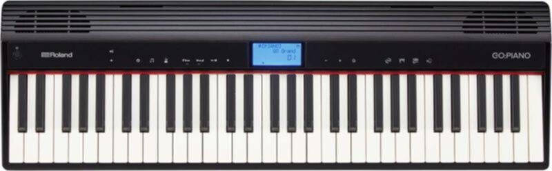 Vous avez toujours eu envie d'apprendre le piano, mais vous ne possédez pas la place nécessaire ou le budget approprié ? Le GO:PIANO de Roland résout ces problèmes et vous permet de réaliser votre rêve. Très abordable, le GO:PIANO constitue une solution portable de haute qualité qui rend l'apprentissage de l'instrument amusant et facile. Il intègre des sons et un toucher authentiques dérivés des meilleurs pianos domestiques Roland, et sa compatibilité Bluetooth® vous permet de travailler avec des applis musicales éducatives depuis votre terminal mobile favori. Intégrant des haut-parleurs, des fonctionnalités d'apprentissage et bien plus, le GO:PIANO constitue un parfait compagnon pour commencer l'étude de l'instrument. Points forts du produits - Des performance de piano premium dans un instrument compact et abordable - Un clavier 61 touches de taille standard avec réponse au toucher authentique - Les fameux sons de piano Roland avec une polyphonie de 128 voix - Intègre également des sons de pianos électriques, orgues et autres pour explorer différents styles - Compatibilité audio/MIDI par Bluetooth pour la connexion à une tablette ou un smartphone - Haut-parleurs intégrés et prise casque pour jouer en toute occasion - Métronome, transposition et enregistrement pour la pratique quotidienne - Léger, facile à transporter, fonctionnement sur piles - Dimensions (L x P x H): 877 x 271 x 82 mm (sans pupitre) - Alimentation secteur fournie AC 100-240V 50-60 Hz 0.4A - Poids : 3.9 kg