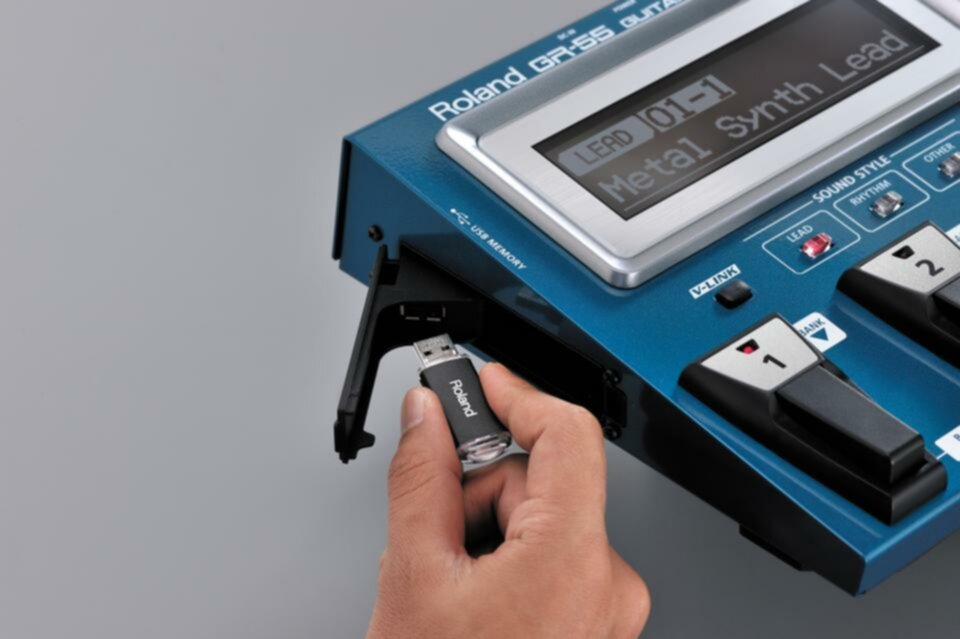Le GR-55 contient deux synthétiseurs PCM (avec plus de 900 sonorités issues des synthés Roland actuels) et la technologie de modélisation COSM capable de générer des modèles de guitares, basses, amplificateurs et même de synthétiseurs de légende. En combinant ces technologies, vous créerez des sons que personne n’a jamais entendus. Prenons, par exemple, notre preset «Metal Synth Lead», une combinaison de deux sons de synthés super gras avec une guitare solid-body/humbucker savamment saturée: difficile de faire mieux en matière de brutalité…