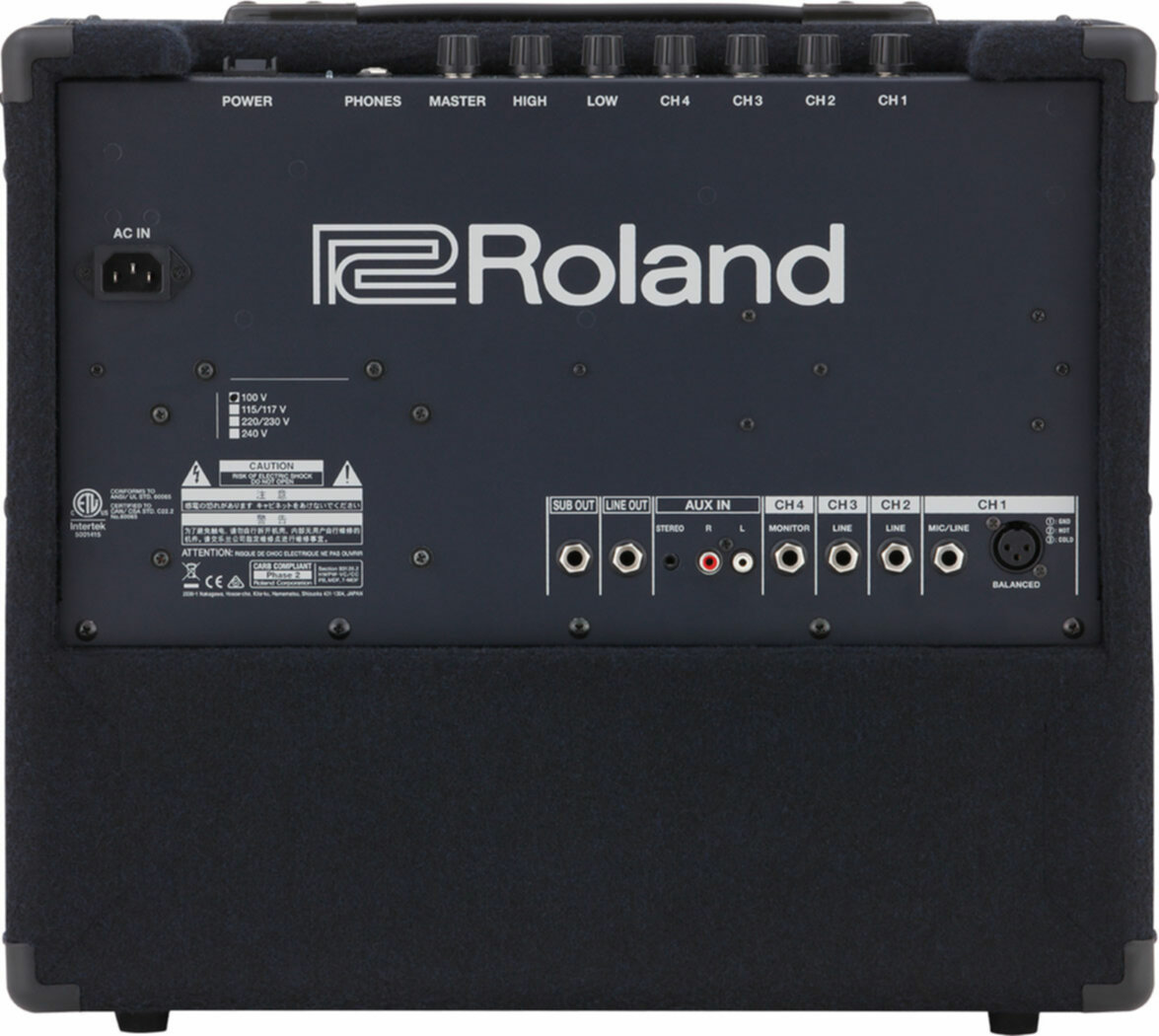 Compact et d’un prix abordable, le KC-200 est doté d’une puissance de 100 watts et d’une table de mixage intégrée pour quatre entrées Line, une entrée Aux, ainsi qu’une prise XLR pour un micro chant. Comparé à son aîné de précédente génération, le KC-150, la section de puissance a été entièrement redéfinie pour fournir plus de puissance de sortie, une meilleure stabilité, et une meilleure reproduction des fréquences basses. Le woofer de 30 cm (12 pouces) a été également amélioré pour fournir une meilleure qualité sonore. Le KC-200 est capable de produire un son massif tout en restant transportable. En cas de besoin, les fréquences basses peuvent être encore plus amplifiées à l’aide d’un subwoofer supplémentaire connecté à la prise Sub Out de l’ampli. Un ampli pour claviers de 100 watts compact et d’un prix abordable Des sections puissance et alimentation améliorées pour permettre une meilleure stabilité et une meilleure reproduction des fréquences basses Un système de haut-parleurs deux voix avec nouveaux woofer 30 cm (12 pouces) et tweeter Une table de mixage intégrée avec quatre canaux d’entrée Line en jack 1/4 de pouce, une entrée auxiliaire en minijack et RCA, une EQ Master. Un canal 4 dédié au monitoring, par exemple pour une piste de click Une entrée micro en XLR, une sortie Line en jack 1/4 de pouce, des sorties casque et Sub Des connecteurs en métal pour une plus grande robustesse