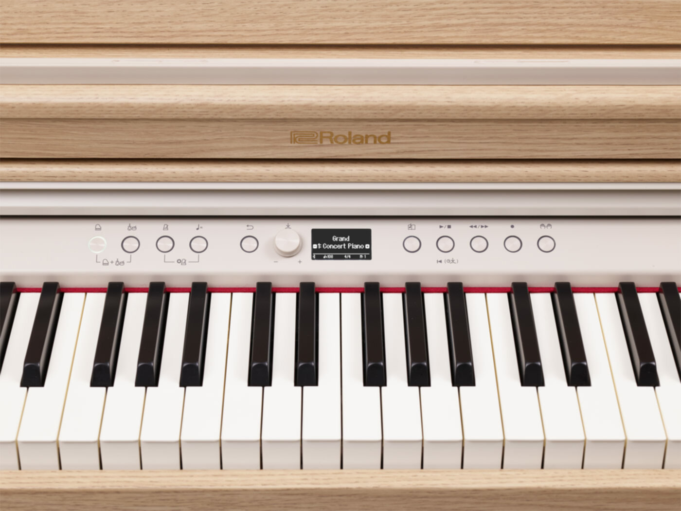 Caractéristiques : - 88 touches - Clavier standard PHA-4 avec échappement et Ivory Feel - SuperNatural Piano Sound - Sons: 324 - Effets: Ambience, Brilliance, Piano Tones: Damper, String, Key Off - Headphone 3D Ambience effect - 256 voix polyphonie double - split et fonction double piano - Écran OLED graphique - Enregistreur de morceau 1 piste - Sauvegarde de fichiers MIDI standard (format 0) - 377 morceaux internes - Fichiers audio (format WAV) - 3x pédales - 1x Entrée stéréo In 3,5 mm - 2x Entrées casque (1x jack 6,3 mm 1x jack 3,5 mm) - USB vers hôte - USB vers appareil - Bluetooth Audio - MIDI - Haut-parleur: 2x12W - Inclus : Alimentation Câble Roland PSB 7U, crochet pour casque, pupitre et mode d'emploi - Dimensions (avec pupitre) : 1366 x 463 x 1027 mm - Poids : 48,41 kg - Couleur : Chêne Clair