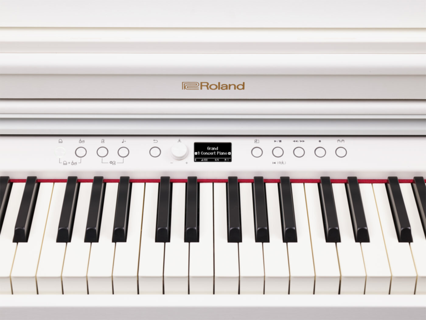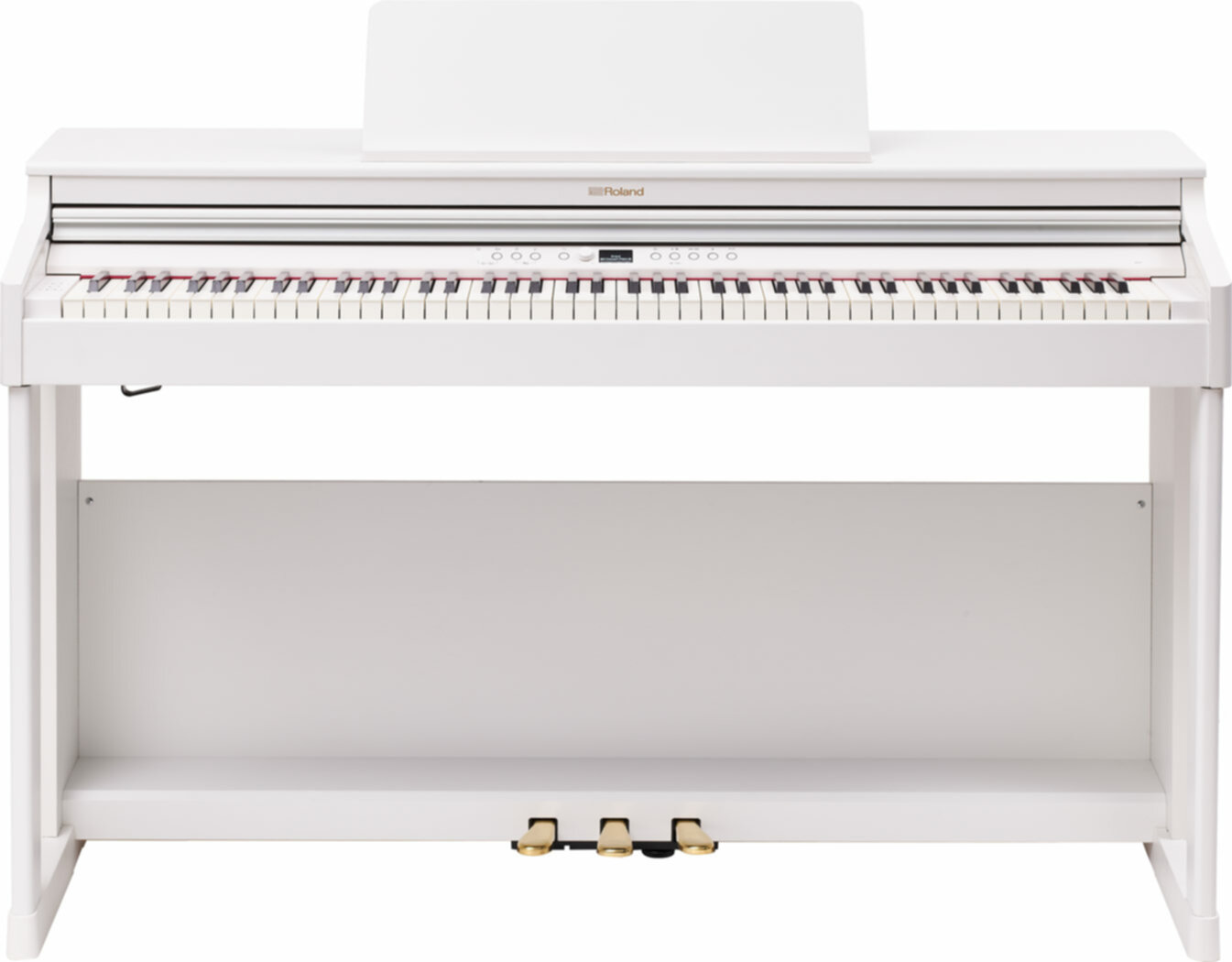 Caractéristiques : - 88 touches - Clavier standard PHA-4 avec échappement et Ivory Feel - SuperNatural Piano Sound - Sons: 324 - Effets: Ambience, Brilliance, Piano Tones: Damper, String, Key Off - Headphone 3D Ambience effect - 256 voix polyphonie double - split et fonction double piano - Écran OLED graphique - Enregistreur de morceau 1 piste - Sauvegarde de fichiers MIDI standard (format 0) - 377 morceaux internes - Fichiers audio (format WAV) - 3x pédales - 1x Entrée stéréo In 3,5 mm - 2x Entrées casque (1x jack 6,3 mm 1x jack 3,5 mm) - USB vers hôte - USB vers appareil - Bluetooth Audio - MIDI - Haut-parleur: 2x12W - Inclus : Alimentation Câble Roland PSB 7U, crochet pour casque, pupitre et mode d'emploi - Dimensions (avec pupitre) : 1366 x 463 x 1027 mm - Poids : 48,41 kg - Couleur : Blanc