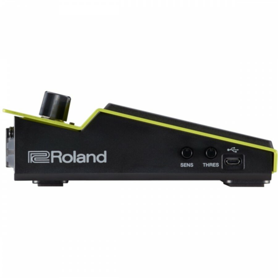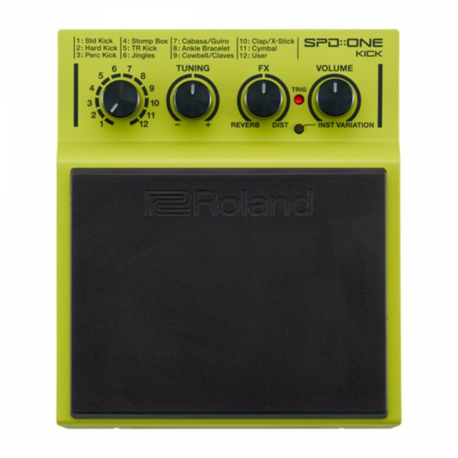 Pad de percussion numérique Roland de la série SPD::ONE Le SPD::ONE KICK de Roland est un nouveau type de pad de percussion numérique, qui permet à tous types de musiciens d’ajouter des sons de grosse caisse et de percussion à leur palette. Il contient 22 sons de percussion réalistes : grosses caisses, stop boxes, shakers, cloches... Et vous pouvez importer vos propres échantillons audio dans l’une des 12 banques de sons internes disponibles. Lorsque vous avez tout réglé, le pad robuste mais sensible du SPD::ONE KICK peut être joué à la main, au pied ou avec des baguettes. La sensibilité des capteurs peut être facilement réglée à l’aide de contrôleurs dédiés. Alimenté par piles ou par adaptateur secteur, le SPD::ONE KICK peut être posé sur le sol ou sur une table, ou accroché à n’importe quel support ou rack de batterie à l’aide de l’adaptateur fourni. Les manipulations sont simples, même pour les musiciens que la technique rebute : il n’y a que quatre boutons à tourner sur le panneau de contrôle pour changer de son, régler le volume, la balance... Que vous soyez batteur, percussionniste, guitariste, DJ ou chanteur, le SPD::ONE KICK se place en instrument simple et polyvalent pour élargir votre palette sonore et ajouter une nouvelle énergie à vos concerts. Garantie : Garantie 3 ans* *En enregistrant votre instrument, vous étendez votre garantie de 2 à 3 ans ! Il est très important d'enregistrer votre instrument dans les 30 jours après l'achat. Voir condition sur https://fr.rolandce.com/product-registration CARACTÉRISTIQUES TECHNIQUES Un pad de percussion électronique léger et compact qu’on peut jouer à la main, au pied ou aux baguettes 22 sons intégrés, y compris de vrais sons de grosse caisse et de percussions Importez vos propres échantillons WAV via USB dans l’une des 12 banques de sons Éditez et contrôlez vos sons avec quatre simples boutons rotatifs Alimenté par piles (4 x AA) ou adaptateur secteur Sorties Main (Mono) et casque audio stéréo séparées La fonction USB-MIDI permet de déclencher les sons d’un logiciel de musique Peut être posé sur une table ou au sol, incorporé à un kit de batterie, accroché à un pied de micro à l’aide du support de fixation fourni