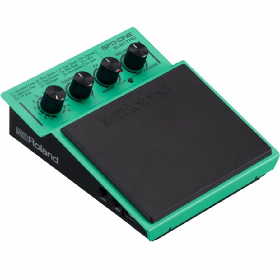 Pad de percussion numérique Roland de la série SPD::ONE Le SPD::ONE ELECTRO de Roland est un nouveau type de pad de percussion numérique, qui permet à tous types de musiciens d’ajouter des sons électroniques à leur palette. Il contient 22 sons cultes, dont les puissantes grosses caisses 808, des caisses claires bien grasses, des claps qui claquent, des cloches électroniques... Et vous pouvez importer vos propres échantillons audio dans l’une des 12 banques de sons internes disponibles. Lorsque vous avez tout réglé, le pad robuste mais sensible du SPD::ONE ELECTRO peut être joué à la main, au pied ou avec des baguettes. La sensibilité des capteurs peut être facilement réglée à l’aide de contrôleurs dédiés. Alimenté par piles ou par adaptateur secteur, le SPD::ONE ELECTRO peut être posé sur le sol ou sur une table, ou accroché à n’importe quel support ou rack de batterie à l’aide de l’adaptateur fourni. Les manipulations sont simples, même pour les musiciens que la technique rebute : il n’y a que quatre boutons à tourner sur le panneau de contrôle pour changer de son, régler le volume, la balance... Que vous soyez batteur, percussionniste, guitariste, DJ ou chanteur, le SPD::ONE ELECTRO se place en instrument simple et polyvalent pour élargir votre palette sonore et ajouter une nouvelle énergie à vos concerts. Garantie : Garantie 3 ans* *En enregistrant votre instrument, vous étendez votre garantie de 2 à 3 ans ! Il est très important d'enregistrer votre instrument dans les 30 jours après l'achat. Voir condition sur https://fr.rolandce.com/product-registration CARACTÉRISTIQUES TECHNIQUES Un pad de percussion électronique léger et compact qu’on peut jouer à la main, au pied ou aux baguettes 22 sons intégrés, y compris de vrais sons de grosse caisse et de percussions Importez vos propres échantillons WAV via USB dans l’une des 12 banques de sons Éditez et contrôlez vos sons avec quatre simples boutons rotatifs Alimenté par piles (4 x AA) ou adaptateur secteur Sorties Main (Mono) et casque audio stéréo séparées La fonction USB-MIDI permet de déclencher les sons d’un logiciel de musique Peut être posé sur une table ou au sol, incorporé à un kit de batterie, accroché à un pied de micro à l’aide du support de fixation fourni