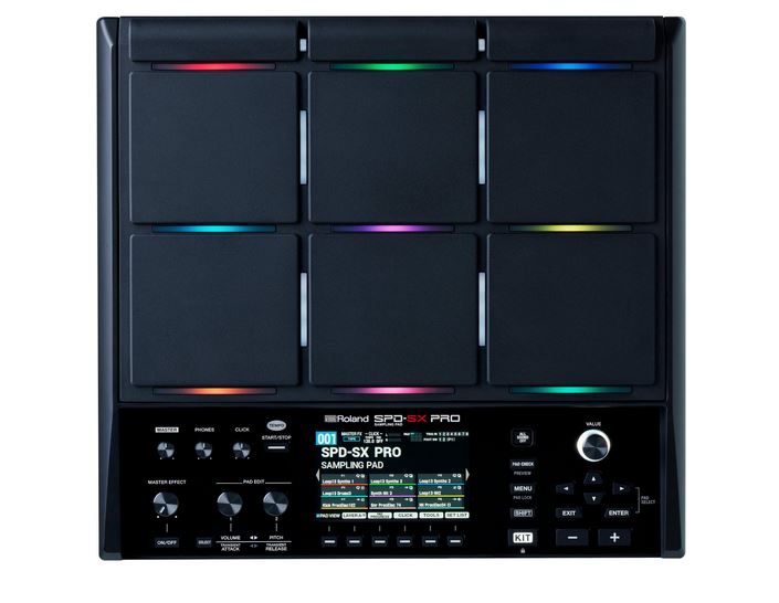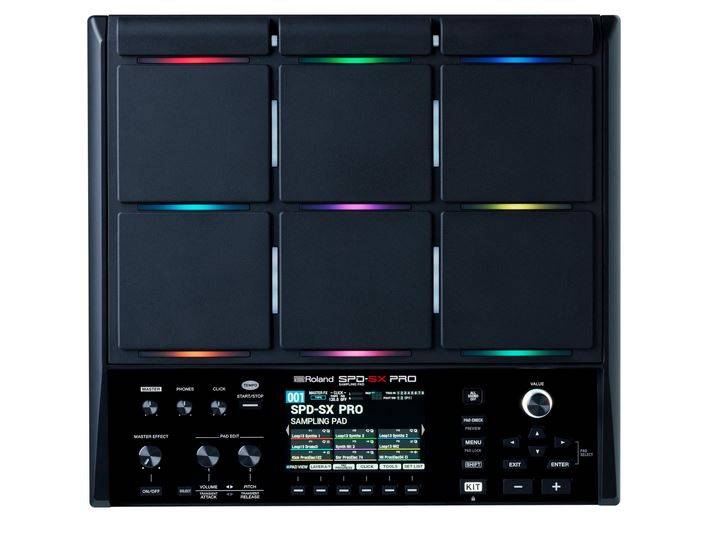 9 pads Plus de 1550 échantillons et sons 43 kits prédéfinis effaçables et 157 kits utilisateur 32 Go d'espace de stockage interne pour les échantillons Pistes d'accompagnement et pistes de clic Importation de fichiers WAV/AIFF 48/44,1 kHz (16/24/32 bits) et MP3 (32-320 kbps) avec conversion automatique 48 kHz/16 bits Ecran couleur 4,3" Jusqu'à 4 effets parallèles Side-Chain avec routage de sortie Séquenceur 16 pas Métronome Enregistrement WAV en temps réel Sensibilité accrue des pads et performances de diaphonie améliorées Application SPD-SX PRO dédiée pour Windows/Mac pour faciliter l'importation, la gestion des échantillons et l'édition approfondie des kits Dimensions (L x P x H): 360 x 330 x 93 mm Poids: 3 kg Bloc d'alimentation incl. Connexions: 2 sorties Master (symétriques) sur Jack 6,3 mm 4 sorties Direct (symétriques, librement assignables) sur Jack 6,3 mm 1 sortie casque sur Jack stéréo 6,3 mm 1 entrée ligne sur Jack stéréo 6,3 mm avec son propre contrôle de volume 4 entrées Trigger sur Jack stéréo 6,3 mm pour jusqu'à 8 triggers externes individuels ou pads 1 connexion pour contrôleur de charleston ou pédale d'expression sur Jack 6,3 mm 1 entrée pour footswitch simple ou double sur Jack 6,3 mm