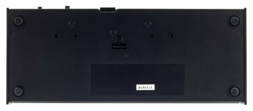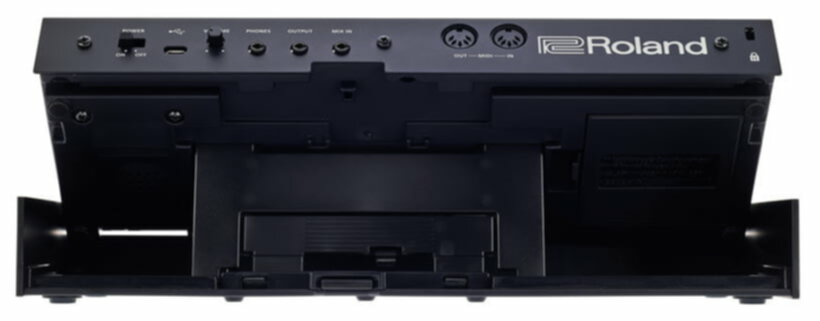 Réplique compacte de la boîte à rythmes légendaire TR-808 Caractéristiques sonores, comportement et interface utilisateur de l'original Contrôle des instruments: Tone, Level, Tuning, Decay, Compressor, Gain, Tune, Pan Séquenceur 16 pas / 16 sous-pas / 16 banques de mémoire (12 x 16 motifs / 4 x 16 intro / fill-in) Séquenceur programmable avec "Step & Tap" classiques Jeux ininterrompus même lors de la commutation des modes de fonctionnement Affichage LED 10 sorties séparées via audio USB Sortie Trigger (déclenchement) assignable pour contrôler les instruments externes Construction métallique solide Contient Roland DK-01 Boutique Dock pour maintien sue différents angles Alimentation avec 4 piles AA ou alimentation via USB Mini haut-parleur intégré Dimensions L x P x H): 308 x 130 x 51 mm Poids (avec piles et Dock Boutique): 1,3 kg Mémoire utilisateur Pattern, Intro/Fill-In: 16 Bank (12x16 Pattern, 4x16 Intro/Fill-In) Steps 16 steps avec 16 sub steps Instruments BD: BASS DRUM SD: SNARE DRUM LC: LOW CONGA, LT: LOW TOM MC: MID CONGA, MT: MID TOM HC: HI CONGA, HT: HI TOM CL: CLAVES, RS: RIM SHOT MA: MARACAS, CP: HAND CLAP CB: COW BELL CY: CYMBAL OH: OPEN HI HAT CH: CLOSED HI HAT Contrôleur VOLUME knob START/STOP button TEMPO knob BANK/TEMPO/SHUFFLE button FINE/VALUE knob mode selector knob (PATTERN CLEAR, PATTERN WRITE 1st PART/2nd PART, MANUAL PLAY, RHYTHM TRACK PLAY, COMPOSE) INSTRUMENT/TRACK selector knob CLEAR button BASIC VARIATION selector switch and indicator AUTO FILL IN selector knob TRIGGER OUT track select button ACCENT LEVEL knob Instrument LEVEL knob (all instruments) TONE control knob (BD, SD, CY) DECAY control knob (BD, CY, OH) SNAPPY control knob (SD) TUNING control knob (LC/LT, MC/MT, HC/HT) Voice selector switch (LC/LT, MC/MT, HC/HT, CL/RS, MA/CP) PRE-SCALE selector switch STEP button (1-16) and indicator I/F VARIATION switch TAP button MENU/SUB STEP button 1st PART/2nd PART indicator Power switch Effets: Compresseur Ecran: 7 segments, 4 caractères (LED) Scale LED Connectiques TRIGGER OUT jack: mini jack Mono PHONES jack: mini jack Stéréo OUTPUT jack: mini jack Stéréo MIX IN jack: mini jack Stéréo Connectique MIDI (IN, OUT) port USB : Micro-B type (Audio, MIDI) Alimentation Pile rechargeable (AA, HR6) x 4 Pile Alkaline (AA, LR6) x 4 Alimentation par USB Courant : 500 mA (USB bus power) Autonomie Pile rechargeable : Approx. 6 heures * peut varier selon les modèles Dimensions: 308 (W) x 130 (D) x 51 (H) mm Poids: 980 g Accessoires Stand : DK-01 (Ivory) Manuel d'utilisation Pile alcaline (AA, LR6) x 4