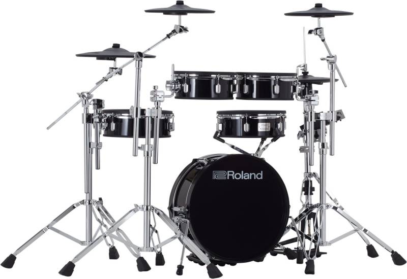 L'encombrement est le même que celui d'un kit V-Drums de milieu de gamme, idéal pour une utilisation à domicile ou sur de petites scènes. Les fûts peu profonds diminuent l'encombrement et le poids, mais en matière de confort de jeu, le batteur ne perçoit pas la différence. Les pieds à double embase, avec attache de tom et perche pour cymbale, complètent l’arsenal et renforcent le look acoustique.