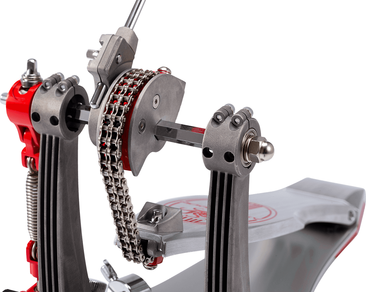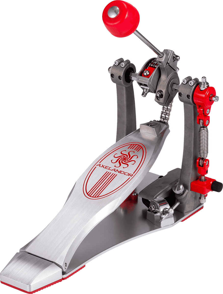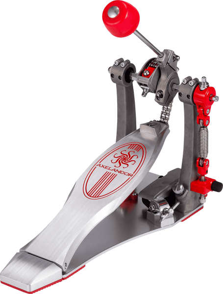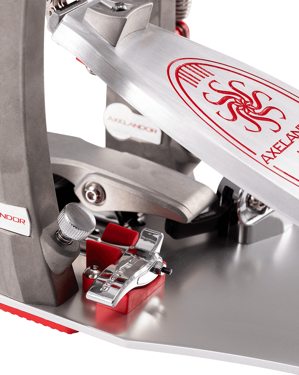 La série de pédales pour grosse caisse Axelandor est conçue en aluminium, lui procurant légèreté et fiabilité.