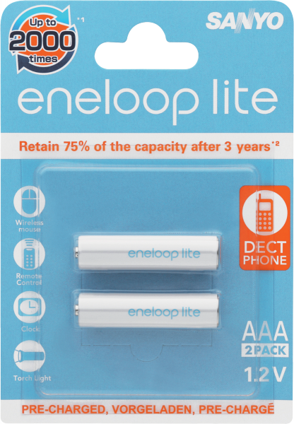 2 piles LR03 rechargeables accu SANYO Lite ENELOOP, 600 mAh