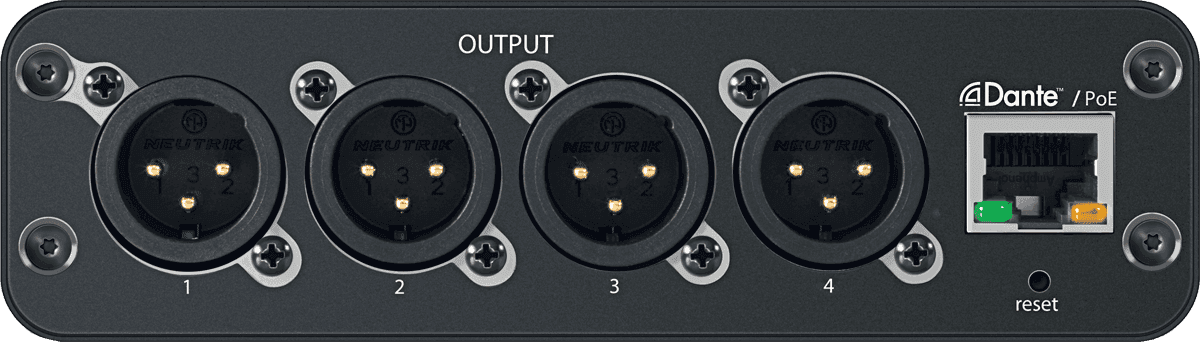 Caractéristiques ANI4OUT-XLR Interface réseau Dante 4 sorties - XLR