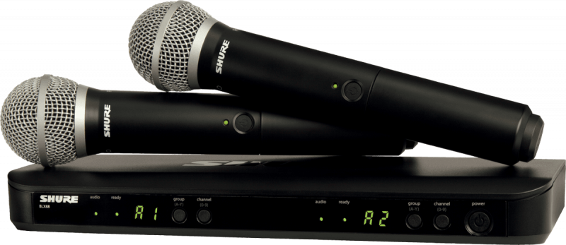 Composé d'un récepteur double BLX88E, de deux émetteurs main BLX2 équipés d’une capsule dynamique cardioïde PG58 et de deux pinces micro WA371.