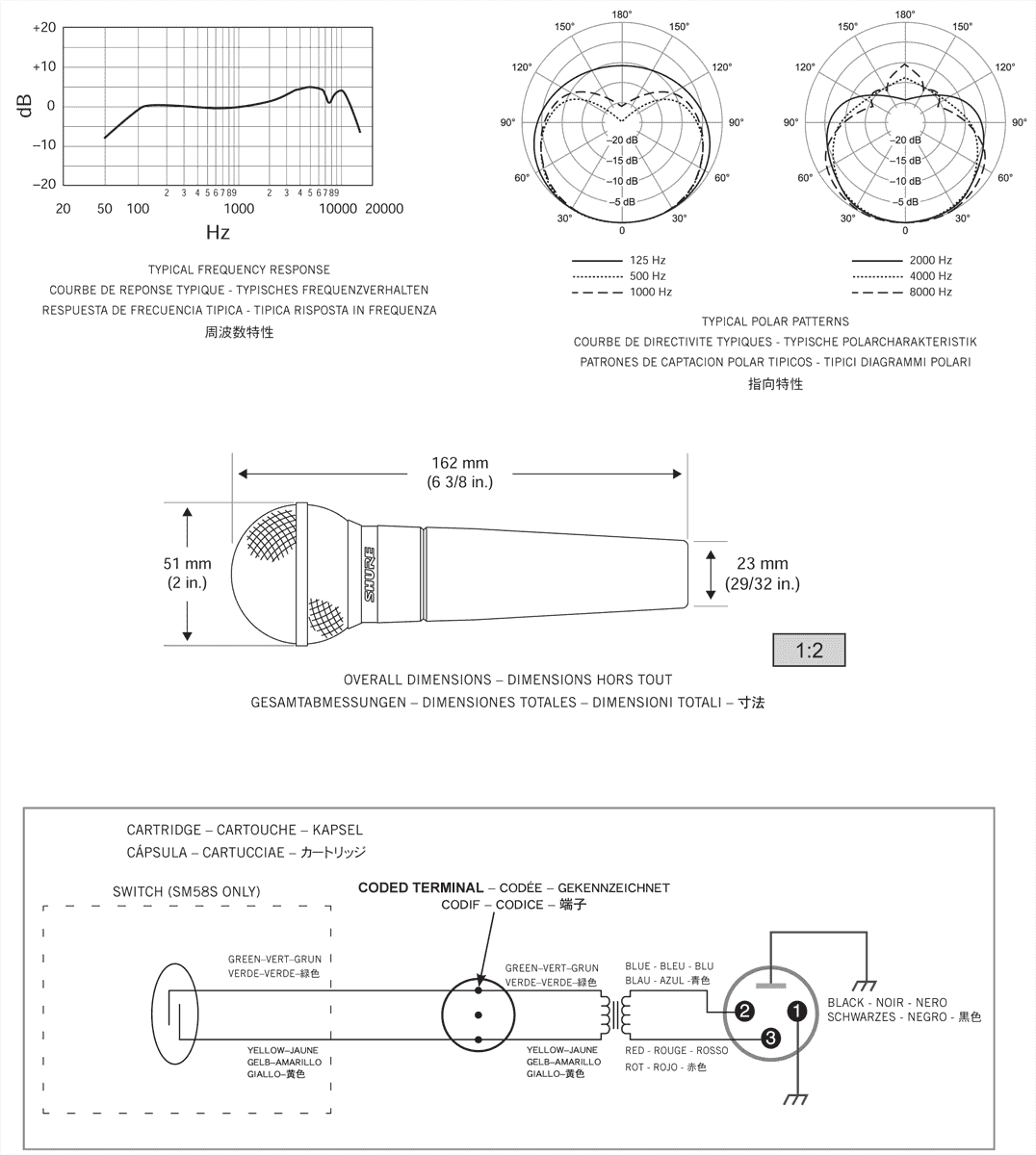 A l'instar des SM57 et SM58... la série SM est incontournable ! La simple évocation des microphones de la série SM suffit à rappeler leur réputation sans faille grâce à leur robustesse inégalée et leur fiabilité tous les jours confirmées. Les légendes que sont tout particulièrement devenus les SM57 et SM58 depuis tant d’années sur les scènes du monde entier montrent à quel point ces microphones ont bien mérité leur surnom de "micros prêts à tout". Ils sont d’ailleurs la référence de nombreux artistes et ingénieurs du son depuis des décennies. Que ce soit pour les voix ou les instruments, sur scène, en studio ou pour le broadcast, la gamme SM offre un choix extrêmement large de microphones permettant de répondre à toutes les applications. Choix numéro un des musiciens et des ingénieurs du son sur les scènes du monde entier, le SM58 a acquis sa réputation grâce à sa silhouette reconnaissable entre toutes, sa robustesse et sa sonorité si caractéristique. Recommandé pour les voix lead et les ch�"urs, ce micro est plus qu'une référence mondiale �" c'est une légende. Il est livré avec pince micro, raccord multipas et pochette de transport. Capsule : dynamique Réponse en fréquence : 50 Hz à 15 kHz Directivité : cardioïde Impédance de sortie : 300 Ohms Sensibilité : -54,5 dBV/Pa (1,9 mV) Dimensions : Ø 51 mm - L 162 mm Poids : 298 g