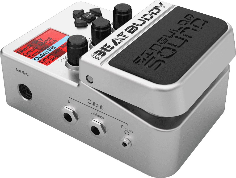 - 10 kits de batteries - 24 styles de musique entièrement éditables (liste du contenu standard disponible ICI) - Supporte jusqu’à 300 kits de batteries et 3 millions de morceaux - Tous les types de mesures paramétrables - Écran LCD 6 couleurs avec métronome visuel pour des fills et transitions précises - Son stéréo de qualité studio 24 bits/44.1 kHz issu d’enregistrements de batteurs professionnels - Utilisation de données non quantifiées pour un toucher humain - Boutons Volume, Drum Set et Tempo - Bouton Tap (Tap tempo) et 4 flèches de navigation dans les menus - 2 entrées jack pour le fonctionnement en stéréo - 2 sorties jack pour le fonctionnement en stéréo - Entrée casque mini-jack - Entrée USB pour personnaliser les styles et les kits de batterie via le logiciel d’édition BeatBuddy Manager (disponible ICI) - Câble USB inclus - Contenu additionnel payant téléchargeable sur le site BeatBuddy - Synchronisation MIDI possible (câble MIDI vendu séparément) - Entrée footswitch (footswitch BeatBuddy vendu séparément) - Carte SD HC 4 Go pré-chargée incluse (copie de secours des fichiers disponible ICI). Environ 3,4 Go de disponible sur la carte. - Utilisable avec tous les systèmes de sonorisation et au casque - Réponse en fréquences : 10 Hz - 20 kHz - Rapport signal/bruit : 95 dB - Alimentation : 9 volts DC, 300 mA, centre négatif (incluse) - Dimensions de la pédale : 127 x 86 x 63 mm Les Beatbuddy sont des boîtes à rythmes très complètes au format d’une pédale d’effet guitare, offrant un large choix de kits de batteries et de styles de morceaux pour accompagner les musiciens de tous les horizons. Développées par Singular Sound, elles se déclinent en deux modèles : BeatBuddy qui offre un son d’exception et des possibilités de paramétrages très avancées, et son alter-ego BeatBuddy Mini qui concentre les fonctionnalités essentielles de la BeatBuddy dans un format compact et prêt à l’emploi. Ces pédales singulières utilisent des fichiers MIDI pour exécuter des compositions chargées dans leur mémoire, à partir d’une banque de sons issues d’enregistrement de batteurs professionnels. Très polyvalentes, les BeatBuddy s’adressent à la fois aux chanteurs, guitaristes, bassistes ou claviéristes, qui désirent bénéficier d’un support rythmique réaliste et évolutif. Ces boîtes à rythme s'avèrent également très efficaces pour les batteurs qui voudraient s'appuyer sur un métronome aux sonorités bien plus agréables que les standards du marché. Proposant des fonctionnalités exclusives et inédites, elles ont été spécialement pensées pour une prise en main rapide à l’instar de la plupart des pédales guitare, et peuvent se connecter directement entre une guitare et un amplificateur. Une simple pression sur la pédale permet de démarrer ou d’arrêter un morceau, d’insérer un break ou de lancer une transition entre deux parties d’un morceau. Cette particularité unique offre aux musiciens une maîtrise totale de la rythmique du morceau. Grâce à l’algorithme propriétaire développé pour les Beatbuddy, le rythme est conservé en toutes circonstances, tout en gardant des enchaînements fluides et naturels. L’écran LCD affiche les informations essentielles et fait office de métronome visuel très lisible et intuitif. Pour les utilisateurs désireux de créer de nouveaux kits de batterie avec leurs propres sons et d’insérer de nouveaux rythmes, la Beatbuddy offre des fonctionnalités de programmation avancées via le logiciel Beatbuddy Manager. Ajouter ou retirer des parties aux morceaux ou aux breaks, programmer l’accent qui marquera le rythme d’un coup de cymbale ou d’un claquement de mains devient alors possible en quelques clics ! Modèle haut de gamme évolutif à destination des utilisateurs les plus exigeants, la Beatbuddy ouvre le champ des possibles grâce à ses fonctionnalités avancées. De la combinaison de tous les styles de batteries aux différents styles présents dans la pédale à la conception et à l'édition de ses propres kits de batterie, tout devient possible ! L'ensemble du contenu de la pédale (kits, morceaux, sons) peut être édité grâce au logiciel BeatBuddy Manager en la connectant sur un ordinateur via le câble USB fourni. Elle peut être synchronisée en MIDI avec un appareil MIDI compatible, et est pilotable à partir du footswitch vendu séparément.