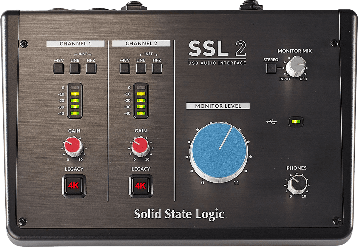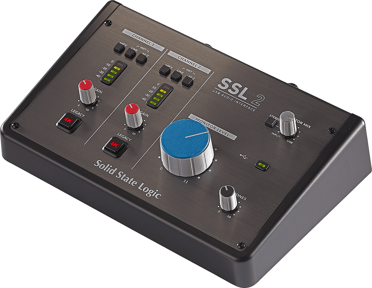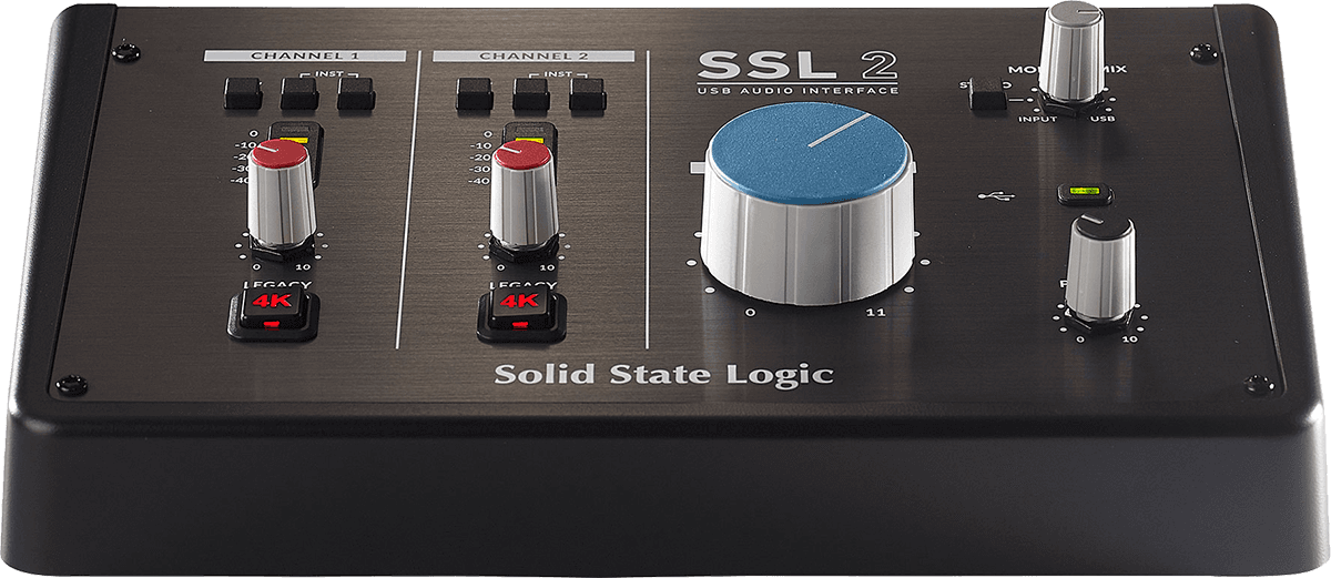 Héritière des célèbres consoles de mixage équipant les plus grands studios, la SSL 2 dispose d'un circuit de renforcement analogique dit "Legacy 4K", en hommage à la console légendaire SSL4000 l'ayant inspiré, utilisée par les plus grands ingénieurs du son tels que Chris Lord-Alge (Green Day, Muse...) ou Andy Wallace (Linkin Park, Coldplay...). Ce commutateur ajoute à votre son cette touche musicale subtile mais inimitable propre à ces onéreuses consoles analogiques, qui distinguera instantanément vos enregistrements des autres. N'hésitez pas à essayer ce petit bouton "magique" sur vos instruments, vous ne serez pas déçu !