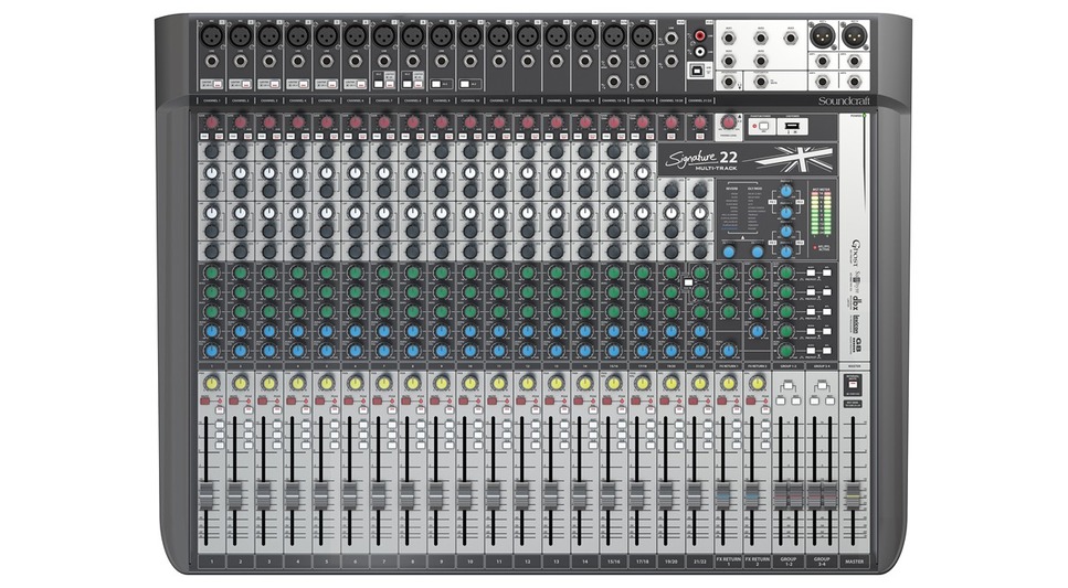 Toutes les consoles de la série Soundcraft Signature intègrent les composants emblématiques qui ont fait le succès des consoles Soundcraft : les préamplis micro de la série Ghost, les correcteurs Soundcraft® Sapphyre British EQ et les circuits de routing de la série GB. En complément, une section d’effets Lexicon, une interface USB 24 entrées, 22 sorties et le téléchargement gratuit du séquenceur Ableton Live 9 Lite et du plug-in de réverbération Lexicon MPX-L. • Préampli Soundcraft® Ghost très faible bruit • Correcteur Soundcraft® Sapphyre British EQ • Module d'effets Lexicon® avec réverbération, délais, chorus et modulations • dbx® limiteurs sur les canaux d'entrées • Interface USB 24 entrées, 22 sorties • Entrée commutable Instrument Hi-Z pour guitares, basses et autres instruments électriques • Filtre coupe-bas et alimentation fantôme 48 V par canal • Routing Soundcraft® GB Series • Fader haute qualité • Châssis robuste en métal • Alimentation universelle intégrée