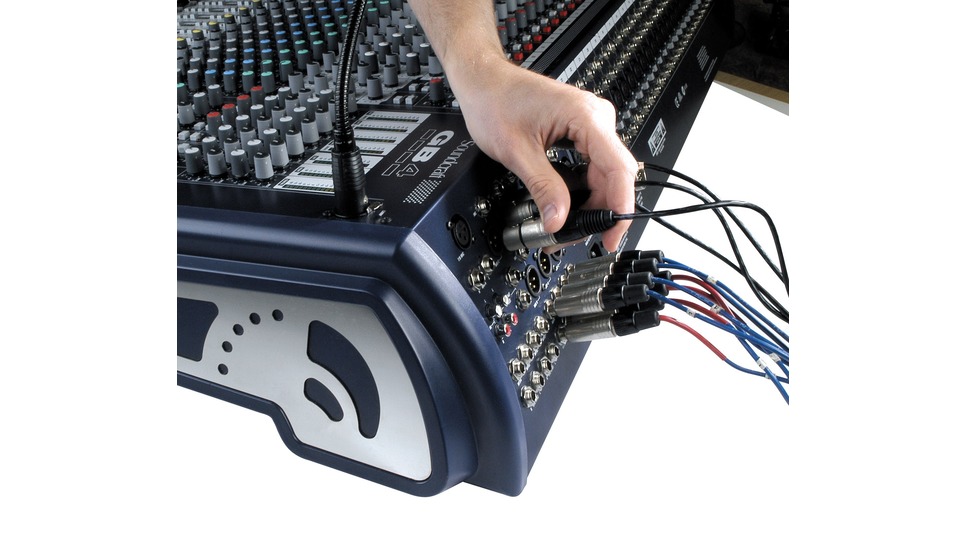 Le panneau arrière où se retrouve toute la connectique est incliné à 15° afin de rendre plus facile les opérations de patch, même lorsque la console est installée dans un flight-case. Elle propose une sortie générale pour l'enregistrement équipée d'un limiteur.