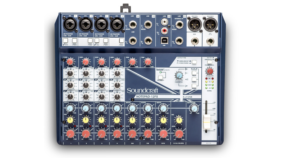 Les consoles Notepad 8FX et 12FX intègrent un module d’effets Lexicon de qualité studio permettant d’optimiser votre mixage avec des traitements de reverbération, chorus ou délai avec contrôle de tap tempo.