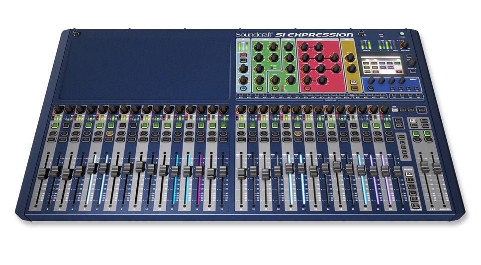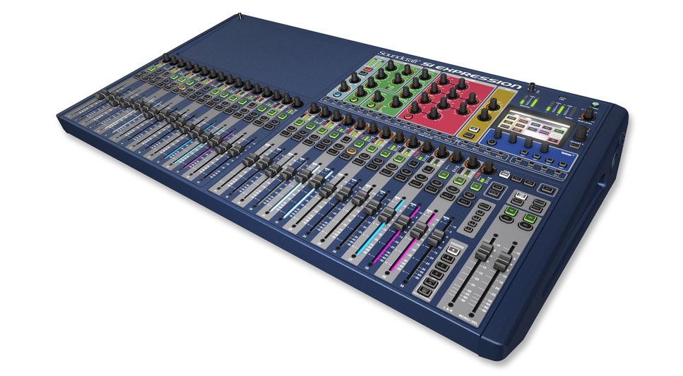 Disponibles sous trois formats : 32, 24 et 16 faders, les consoles numériques Si Expression proposent une exceptionnelle puissance de traitement numérique, permettant le mixage d’un total de 66 entrées vers 35 bus et 16 sorties analogiques, en utilisant une interface aussi simple et intuitive qu’une console traditionnelle. Une rangée d’encodeurs offre un accès immédiat au réglage de Gain, de Pan et de filtrage coupe-bas, sans avoir à sélectionner la voie. La fonction TOTEM permet, en pressant un seul bouton, d’affecter aux faders le mixage des entrées vers les bus de sorties. Vous accédez ainsi immédiatement à vos mixages sans navigation complexe. Le procédé D.O.G.S (Direct Output Gain Stabilisation) permet de compenser automatiquement les variations de gain d’entrée sur les bus de départs et les sorties directes. Ce procédé permet, quand plusieurs consoles partagent la même entrée, de garder inchangé un niveau de départ même quand le gain d’entrée est ajusté. La Si Expression dispose d’un slot d’extension 64 entrées/sorties permettant sa connexion à différents formats de connexion : MADI (pour la connexion d’enregistreur et rack de scène, Blu-Link (pour la connexion de système de traitement numééique, de distribution et d’amplification BSS Soundweb et Crown), CobraNet, RockNet, Aviom et AES/EBU et MuliDigital (FireWire, USB).