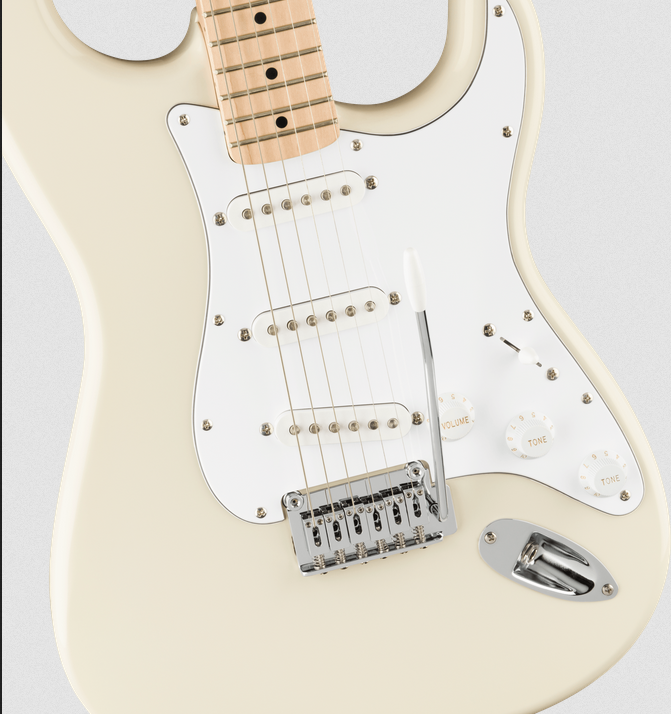 Corps : Peuplier Finition du corps : Polyuréthane brillant Forme du corps : Stratocaster® Boutons de commande : Plastique blanc Touche : Érable Finition de l’accastillage : Chrome Plaque de protection : 3 plis blanc Insertion de touche : Point noir Finition du manche : Satin Uréthane avec face de la tête en Uréthane brillant Construction du Manche : Bolt-On Micro de manche : Monobobine en céramique Orientation : Droitière Configuration : SSS Type des Micros : Bobine simple Sillet : Os synthétique Micro de chevalet : Monobobine en céramique Micro central : Monobobine en céramique Réglages : Volume principal, tonalité 1. (micros manche/milieu), tonalité 2. (micro de pont) Sélécteur de micro : Lame à 5 positions : Position 1. Micro de chevalet, position 2. Microphone de chevalet et de milieu, position 3. Microphone du milieu, position 4. Micro intermédiaire et micro manche, position 5. Microphone de manche Configuration du micro : SSS Chevalet : Trémolo synchronisé à 2 points avec sillets en acier courbé, bras de trémolo à insertion et bloc en acier laminé à froid Mécaniques : Moulé sous pression scellé avec arbres fendus Cordes : Acier nickelé (.009-.042 Gauges) Rayon de la touche : 241 mm Type de Radius de Touche : Moderne Taille des frettes : Medium Jumbo Matériau du manche : Érable Type de Matériau du Manche : Érable Forme du manche : Forme C Type de Profil du Manche : Forme C Nombre de frettes : 21 Matériau du Sillet de Tête : Os synthétique Largeur de sillet : 1,650" (42 mm) Diapason : 25.5" (64.77 cm) Tige de serrage : Réglage de la tête Style : 3 micros simples bobinage