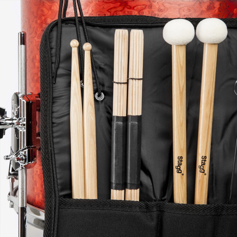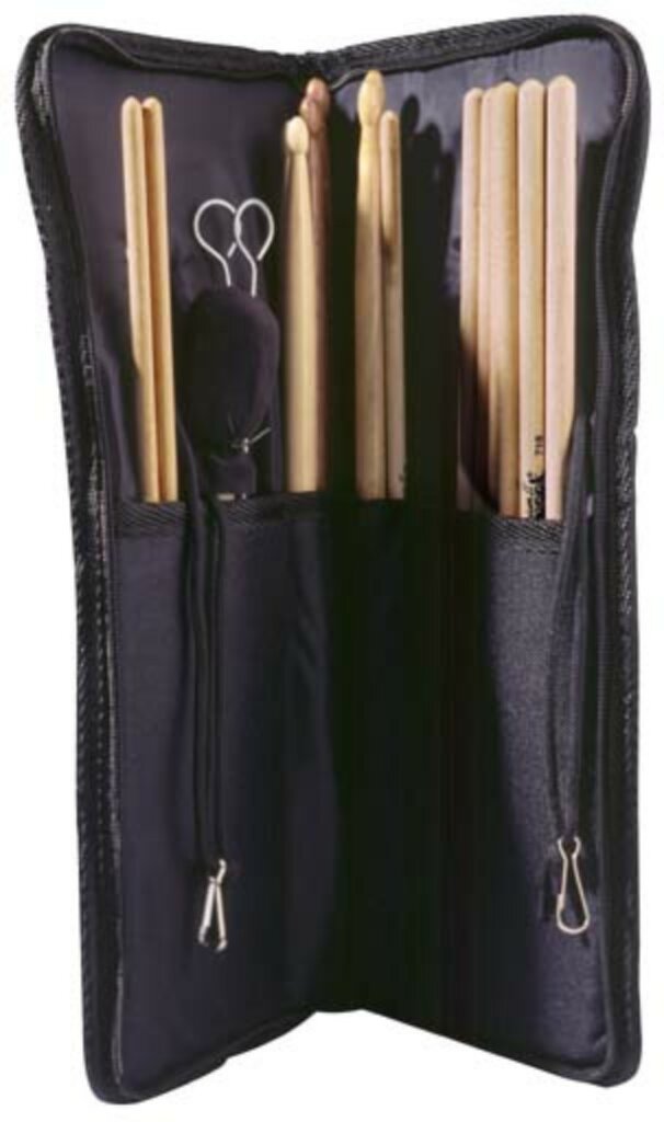 - Nylon tressé noir (rembourrage 10 mm) avec fermeture éclair piquée & renforcée - Pochette extérieure pour petits accessoires - Sangle de transport et de suspension - Idéale pour protéger vos baguettes, mailloches, balais, ''rods'', etc - Dimensions internes (LxH): 35 x 43 cm.