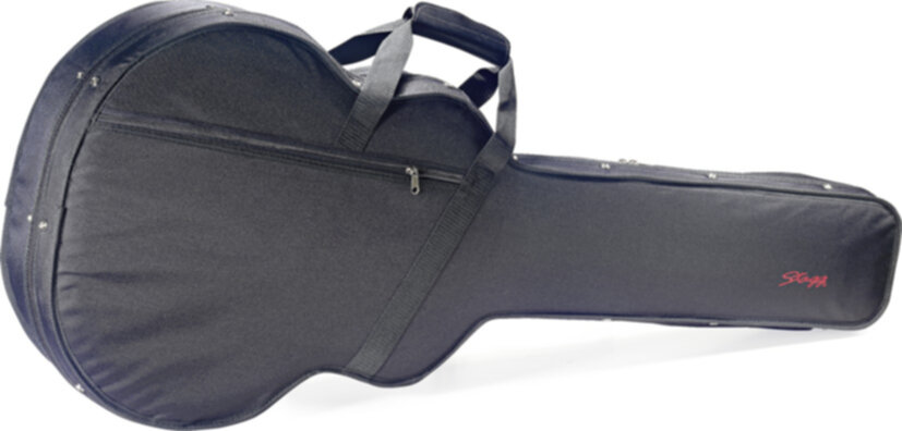 Soft case Basic pour guitare jumbo acoustique - Solide housse en nylon noir - Forme en polystyrène expansé (PSE) avec renforts en bois - Recouvrement intérieur en velours noir - Compartiment intérieur pour les petits accessoires - Pochette extérieure pour partitions - Large poignée de transport en nylon tressé - Sangle réglable.