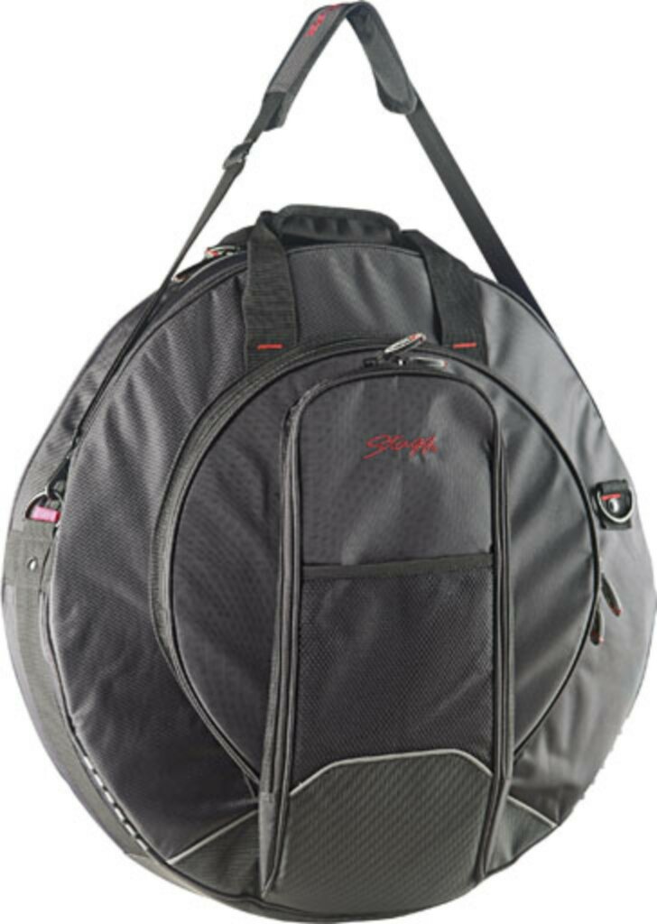 - Nylon noir renforcé - Finition intérieure molletonnée avec rembourrage en mousse - Poche principale à 4 compartiments pour différentes tailles de cymbales - Poche avant 16" à 4 compartiments pour charleyston/splash - Pochette extérieure pour baguettes et petits accessoires - Solide poignée style "confort" - Bandoulière réglable et détachable, avec épaulette