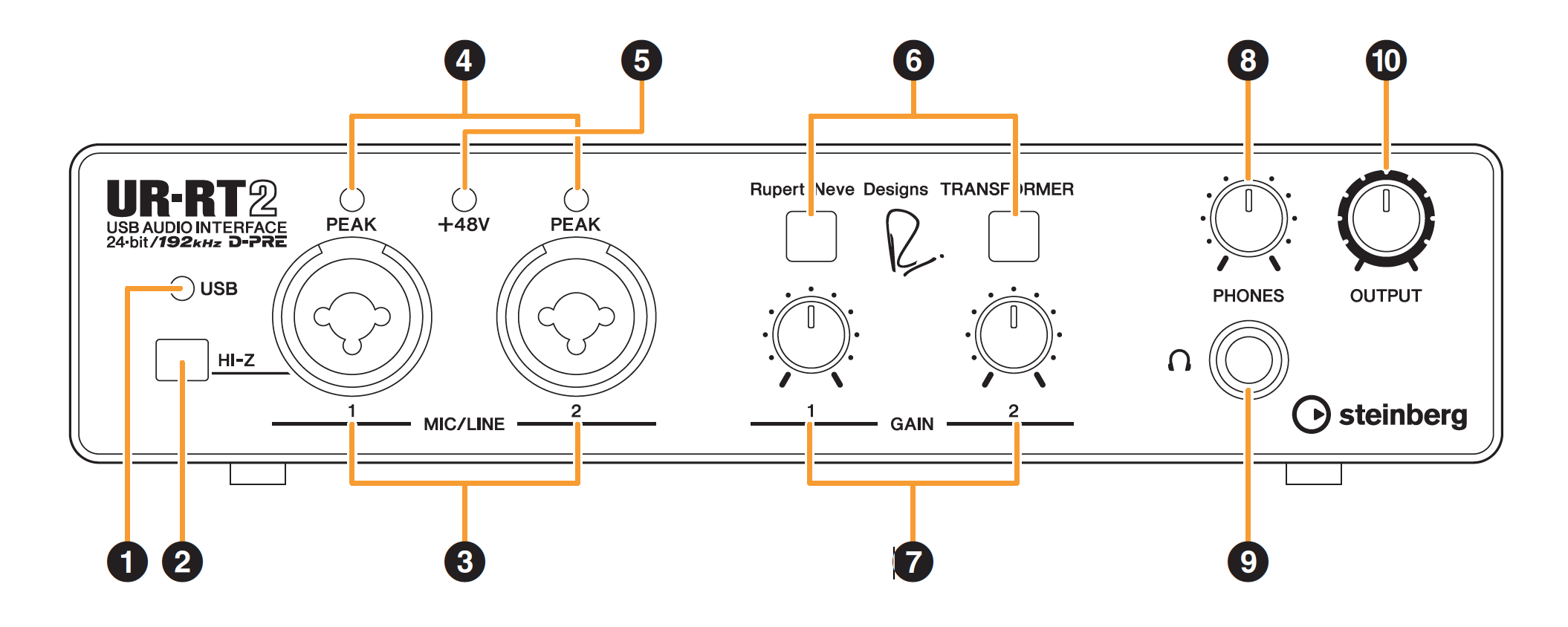 L'UR-RT2 est une interface audio/MIDI USB 2.0 avec quatre entrées, deux sorties et des transformateurs Rupert Neve Designs commutables dans les entrées en façade. Combinés aux préamplis D-PRE de haute qualité, les transformateurs Rupert Neve Designs produisent un son musical, expressif et riche en harmoniques, ce qui est tout particulièrement avantageux pour le chant, la guitare acoustique et les instruments à la dynamique élevée. Le DSP SSP2 embarqué permet d'utiliser des effets sans latence pour le monitoring et constitue une plateforme pour la production mobile en qualité studio avec toute une variété d'options d'entrée/sortie pour ordinateur portable et iPad. Avec sa robustesse et sa qualité exceptionnelle eu égard à son prix, l'UR-RT2 est l'interface portable idéale pour la production avec un PC, un Mac ou un appareil iOS. La fonction Loopback mélange les signaux entrant et le signal lu (playback) et permet de réaliser facilement le streaming de performances live sur Internet. Monitoring sans latence avec effets Grâce au DSP SSP2 embarqué et au logiciel dspMixFx inclus, les UR-RT offrent un monitoring sans latence avec effets sous Windows, macOS et iOS, et avec n'importe quelle DAW. • Interface audio USB 2.0 24 bits/192 kHz • 2 préamplis micro D-PRE de classe A avec alimentation fantôme +48 V • Transformateur Rupert Neve Designs commutable dans chaque entrée en façade • 2 entrées analogiques sur combos XLR/TRS (entrée 1 avec commutateur Hi-Z pour guitare électrique), 2 entrées ligne sur jacks symétriques, prise casque avec réglage de volume indépendant • Monitoring à DSP sans latence avec effets REV-X, Channel Strip et Guitar Amp Classics (plugins en version VST 3 également fournis) • Éditeur logiciel dspMixFx pour Windows, macOS et iOS • Entrée et sortie MIDI • Boîtier entièrement en métal • Séquenceur logiciel Cubase AI fourni en version à télécharger pour Mac et PC (environnements 64 bits uniquement) et app Cubasis LE pour iPad fournie • Compatibilité multi-plateforme pour Windows, macOS et iOS (avec kit Apple iPad Camera Connection, adaptateur Lightning to USB Camera ou adaptateur Lightning to USB 3 Camera)