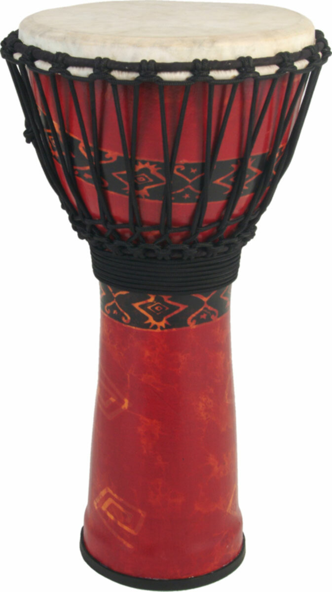 DJEMBE 12" BALI RED La série de Djembés Synergie est de plus en plus appréciée. Avec son corps en PVC, elle permet à tous de pouvoir s'initier aux joies de la percussion. - Corps en PVC - Peau de chèvre - Tension avec cordage traditionnel - Poignée de transport intégrée au cordage