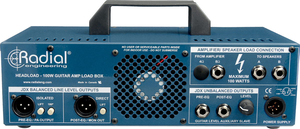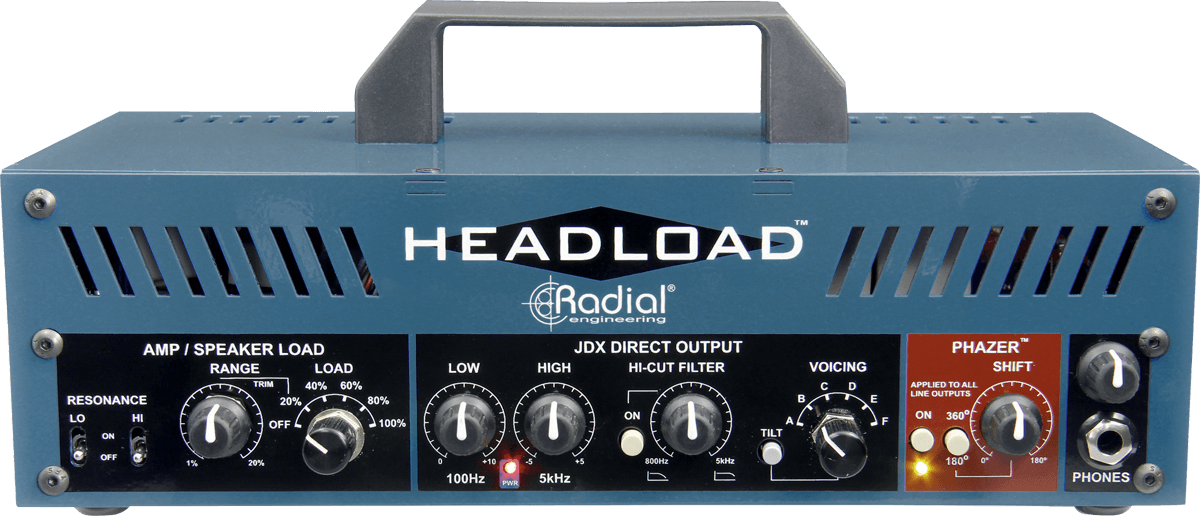Afin d'assurer une plus grande consistance de spectacle en spectacle, le Headload est équipé d'un circuit Radial JDX Reactor qui réagit à la fois, au signal de la tête d'ampli ainsi qu'à la charge réactive du haut-parleur pour un résultat plus naturel. Le JDX s'est forgé une énorme réputation auprès des utilisateurs de classe mondiale tels Megadeth, Aerosmith, Rascal Flatts, Sting et Radiohead.