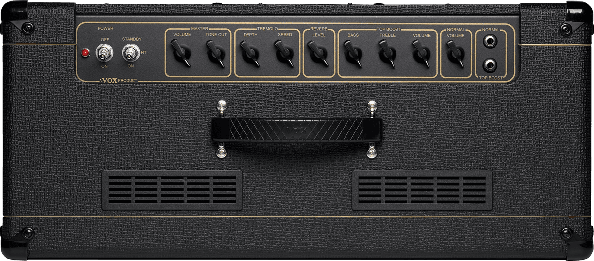 D’autant que cette belle puissance est servie par un haut-parleur Celestion Greenback 12 pouces qui sait répondre à toutes les sollicitations dynamiques de l’ampli et donc, a fortiori, de votre jeu à la guitare. Mais Vox ne s’est pas arrêtée en chemin car s’ils ont conservé l’esthétique indémodable du modèle originel, ils ont également prévu une réverbe à ressort, déclenchable via le footswitch, un effet trémolo qui rappelle les belles heures du rock ‘n’ roll, et même un master volume. Permettant dès lors à cet ampli mythique de demeurer un modèle du genre autant pour les musiques actuelles que pour les grands classiques du rock.