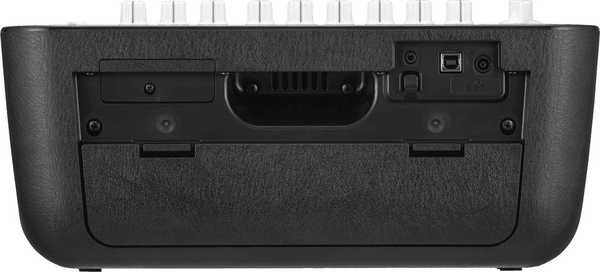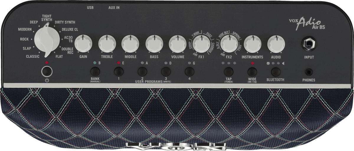 Tone Room : l’esprit de l’Adio Air Le logiciel Tone Room Editor est fourni avec l’Adio air, vous permettant dès lors d’accroître la sélection de modélisations et d'effets offertes et de tirer ainsi parti de tout le potentiel de l'Adio Air. Jusqu'à 8 amplis customisés et effets peuvent être enregistrés dans l’Adio. Tone Room est compatible avec les systèmes d’exploitation Windows, Mac, iOS et Android. Pour éviter les résonances indésirables du baffle, la structure intérieure (qui maintient les haut-parleurs) est séparée de la partie arrière. De plus, la disposition interne isole les h. p. en espaces indépendants pour produire une diffusion stéréo à la spatialisation optimisée. La grille avant en nid d’abeille offre un ratio élevé d’ouverture : le haut-parleur n’est pas obstrué et le son devient clair et direct. La section Bass reflex exploite un procédé qui minimise les bruits parasites et améliore la tenue des basses fréquences. La conception inclinée unique de l’Adio vous permet de positionner les haut-parleurs en diagonale vers le haut afin que le son parvienne directement à vos oreilles, même à courte distance. De la même façon, le châssis est conçu pour minimiser les surfaces parallèles, et déploie un son doux qui supprime toute résonance interne. La technologie Acoustage (Virtual Surround Technology développé par Korg) L'Adio exploite la technologie surround Acoustage, un procédé qui diffuse un effet stéréo exceptionnellement large. Utilisée conjointement à un effet stéréo, cette fonction se montre impressionnante par sa spatialisation et son étendue panoramique hors du commun, vous donnant ainsi la sensation d’un mur d’amplis sur une scène XXL. Grâce au Bluetooth, tous les paramétrages de l’ampli ainsi que les commandes peuvent être effectués à distance, vous permettant ainsi de profiter d’une diffusion audio de haute qualité quel que soit l’environnement. L’Adio Air dispose par ailleurs d’une interface audio USB pour Mac et PC. L’Adio Air convient aussi bien à une salle privée qu’à un studio, dans un espace de type club ou pour de petits spectacles en extérieur : la musique nomade ne connaît plus de limite. L’Adio Air est un amplificateur instrument (guitare ou basse selon le modèle) à modélisation ET une station d’écoute Vox qui bénéficie des toutes dernières évolutions technologiques. Il délivre un son ample et riche grâce à 2 haut-parleurs alimentés par un amplification de 50 W. - Modèles d’amplis : 11 (17 accessibles via le logiciel Tone Room) - Effets 1 (modulation) : 4 (11 accessibles via le logiciel Tone Room) - Effets 1 (délai/réverbe) : 4 (8 accessibles via le logiciel Tone Room) - Programmes : 8 (2 banques de 4 patches) - Effet Wide Stereo (Virtual Surround) : on/off - Réducteur de bruit : off, 1 - 4 niveaux - Égaliseur :off, loud, bass boost, mid boost, treble boost - Entrées/Sorties : entrée jack, entrée jack Aux, entrée casque jack, port USB (type B) - Sans fil : Bluetooth & Bluetooth low energy (Midi) - Amplification : maximum approx. 25 W x 2 RMS @ 8 ohms (avec piles : maximum approx. 2,5 W x 2 @ 8 ohms) - h.p. : 2 x 3", 8 ohms - Inclus : bloc d’alimentation + câble, code JamVox III - Alimentation : 8 piles AA (8 heures avec des alcalines) ou l’adaptateur secteur AC (DC 19 V) inclus - Consommation électrique : 3,42 A (sur piles 200 mA) - Dimensions : 360 x 165 x 163 mm - Poids : 2,9 kg Modèles d’amplis : Classic (normal), Slap, Rock (1), Modern, Deep, Tight Synth, Dirty Synth, Deluxe CL, AC30TB, Double Rec, Flat Avec Tone Room : Classic Bright, Rock 2, Punchy Synth, AC30, Brit 800, Erupt III CH3 Effets 1 : compresseur, T.wah, fuzz, chorus (Stereo Chorus) Avec Tone Room : CE Chorus, Black Flanger, Stereo Flanger, Org Phaser, Small Phase, Twin Trem, Harmonic Trem Effets 2 : Analog Delay, Wide Delay, Spring, Hall Avec Tone Room : Tape, Cross Delay, Room, Plate