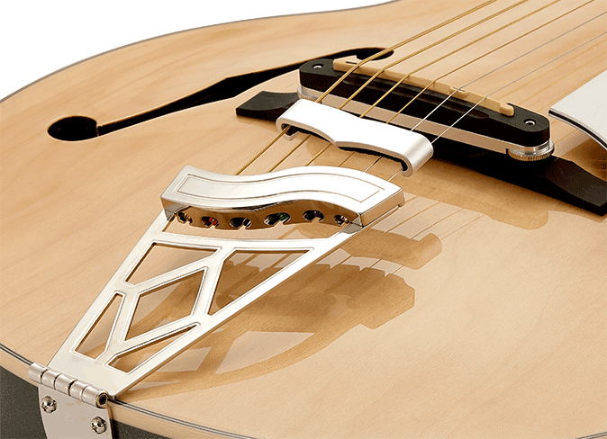 – Un chevalet hybride fait de bois et aluminum délivre un son dynamique, délicat, et adaptable selon les styles, fidèlement restitué par le piezzo de grande qualité.