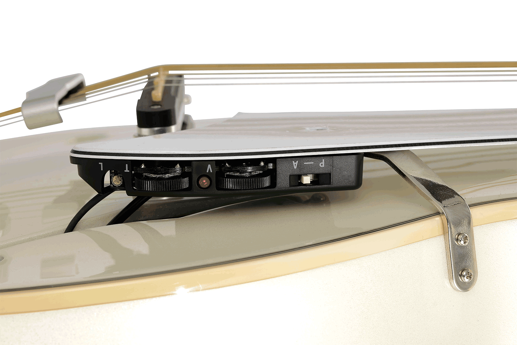 – Discrètement caché sous le pickguard, le préampli Super Capacitor Preamp System fournit fournit une belle quantité de sonorités différentes. Les potentiomètres de volume, tone et le trimpot coupe-bas fournissent des réglages précis pour pour sculpter votre son et ce dernier bénéficie d’une autonomie de 60 heures après une charge de 15 minutes.