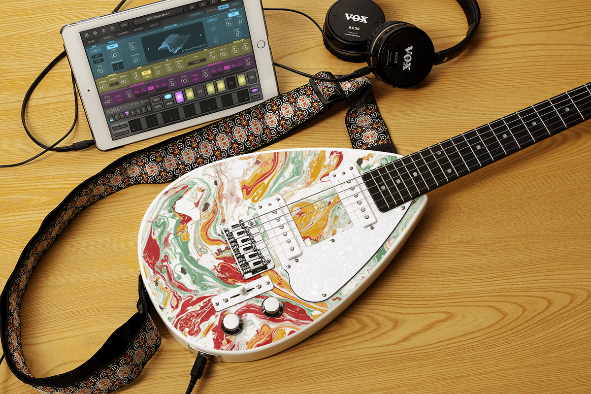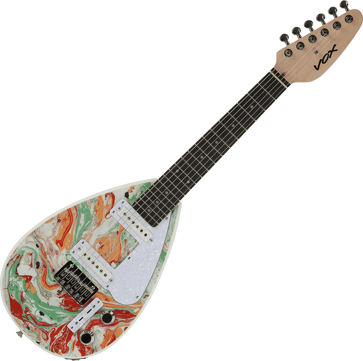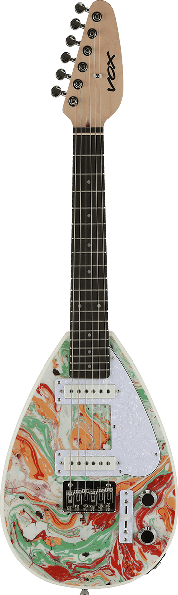 La forme iconique Teardrop de VOX est ici déclinée dans une série de mini-guitares, la Mark III, avec ses deux micros simples et son format mini, elle est proposée en trois coloris.