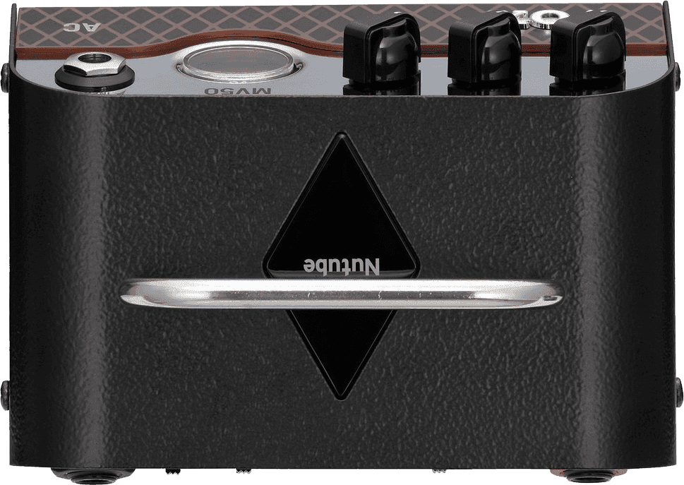 Les amplis Nutube portent bien leur nom : ils innovent ! Semblable dans son principe à une lampe conventionnelle, le Nutube dispose d’une structure de filament de grille d’anode et fonctionne exactement comme une lampe triode. Par conséquent, il génère la même richesse harmonique caractéristique. Grâce à la technologie d’électroluminescence sous vide de Noritake Itron, Korg a su concevoir un composant à la consommation électrique réduite, miniaturisé, qui se montre supérieur à une lampe traditionnelle. Tête d’ampli analogique dotée de la technologie révolutionnaire Nutube. Petit format mais gros son ! Ampli révolutionnaire au son dévastateur, cette petite boîte embarque des circuits analogiques, y compris la technologie Nutube, qui expliquent son grain d’authentique ampli à lampes. Dans sa version AC, il déploie des sonorités de type top boost, héritières du son crunchy légendaire Vox. La technologie Nutube, une vraie innovation. Depuis son introduction, en 2015, le Nutube a révolutionné le monde de l’amplification. Et dont bénéficie l’étage de préampli du MV 50 qui restitue ainsi un vrai son d’ampli à lampes. Une sonorité mise en valeur par l’amplificateur de puissance de classe D, silencieux, fiable et efficace. Le simulateur de h.p., idéal pour l’enregistrement direct. Comme le MV50 dispose par ailleurs d'une sortie ligne/casque, il peut être directement connecté à un mixeur ou à une interface audio, ce qui permet de l’utiliser comme ampli d’enregistrement. Le MV50 comporte également un circuit de simulation de h.p. qui reproduit avec précision les caractéristiques d’un baffle et l’air qu’il déplace. La combinaison parfaite avec les nouveaux baffles Vox BC108 et BC112 ! - Préampli : Nutube 6P1 - Entrée : jack - Sorties : ligne/casque + h.p. - Contrôles façade : gain - tonalité - volume + vumètre à aiguille - Contrôles panneau arrière : éco on/off, standby, EQ flat/deep, atténuateur full/10%/1% - Puissance de sortie : max 50 W RMS @ 4Ω - 25 W RMS @ 8Ω - 12,5 W RMS @ 16Ω - Amplificateur classe D pour une performance silencieuse, efficace et fiable - Alimentation : AC adaptateur DC 19 V - Consommation : 3,43 A - Dimensions (L x L x H) : 135 x 100 x 75 mm - Poids : 540 g - Inclus : adaptateur secteur