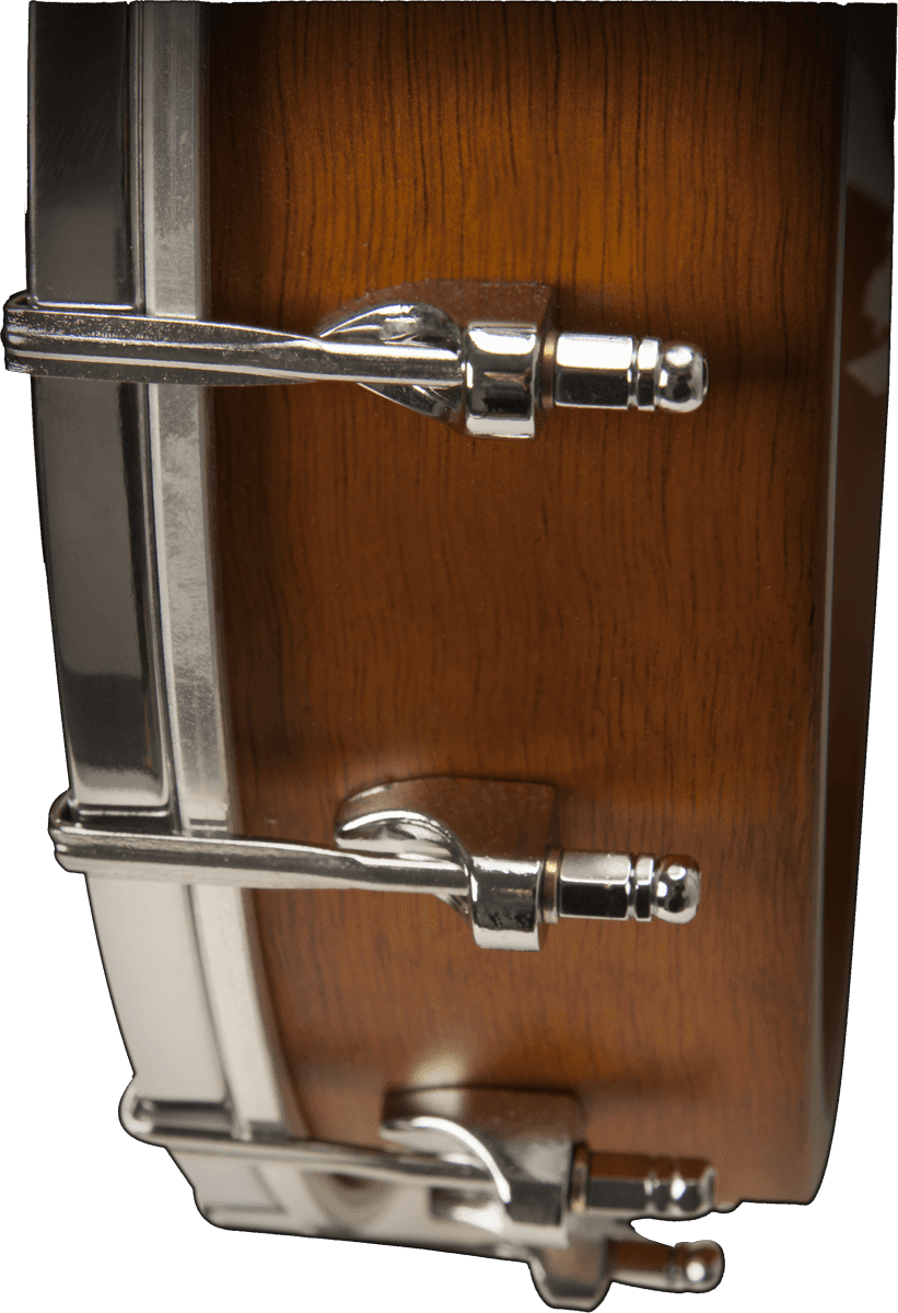 De conception similaire aux banjos à dos ouvert Washburn du début du XXe siècle, il est doté d'une peau Remo pour un son de qualité, d'un chevalet en érable avec sillet en ébène pour un superbe transfert des vibrations, et de mécaniques d'accordage chromés moulés sous pression pour un accordage en douceur.