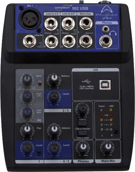 Si vous avez besoin d'une petite mixette pour agrémenter un set de clavier ou travailler en petite formation, la série CONNECT de Wharfedale est idéale. Elle allie qualité de fabrication, simplicité d'utilisation et neutralité sonore. De plus son interface USB incorporée vous permet de l'utiliser comme une carte son. Elle vous permet d'une part d'enregistrer à l'aide d'un ordinateur ce qui passe par le bus stéréo de la console et d'autre part de diffuser la musique contenue dans votre ordinateur sur votre système de diffusion avec un niveau sonore optimal sans utiliser les habituelles sorties casques intégrées de l'ordinateur souvent synonyme de bruits de fond indésirables.
