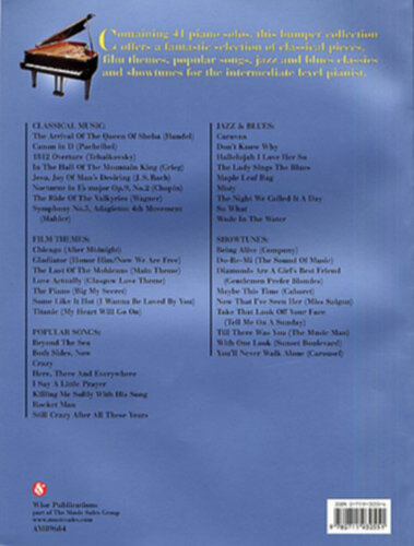 Une superbe anthologie de piano solo qui convient au pianiste de niveau intermédiaire, dans un large éventail de styles dont le jazz, le blues, les musiques de films et les standards classiques.