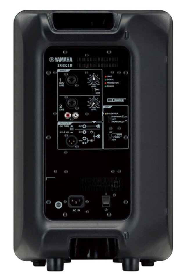 YAMAHA DBR10 - Enceinte bi-amplifiée 10" 700W - Série DBR - Haut-parleur à cône 10” - Bobine mobile de 2” - Tweeter de 1” - Bloc magnétique à aimants en ferrite - Crossover à 2.1kHz FIR-X Tuning - Puissance 700W dynamique (500+200) / 325W continu (260+65) - Réponse en fréquences de 55Hz - 20kHz - Niveau de sortie max de 129dB SPL - Guide d'onde à dispersion constante 90°x60° - 2 entrées combo XLR/ Jack 6.35mm, 1 entrée RCA - 1 sortie LINK XLR - Puits 35mm - 2 points d'accroche M8 - 1 poignée de transport sur le dessus - Finition plastique moulé noir - Utilisable en retour de scène - Dimensions : 308 x 493 x 289 mm - Poids : 10.5 kgs - Chaque enceinte DBR dispose de 2 amplificateurs numériques classe D, un compresseur multi-bande D-Contour et un excellent circuit de protection. La technologie FIR-X issue des enceintes DSR offre une réponse en fréquence et en phase linéaire.