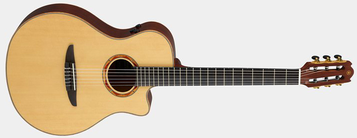 La guitare classique électro YAMAHA NX Series NTX3 est un instrument haute performances imaginé pour les guitaristes électriques et folks qui souhaitent acquérir une corde nylon dotée d'un grand confort de jeu. Sa caisse de petit gabarit (style APX / concert) et son manche aux dimensions accessibles (largeur première frette 48 mm) a tout pour les satisfaire. Tant au niveau de la lutherie (essences massives triées sur le volet - table Epicéa Sitka / caisse Noyer / touche Ebène - barrages custom accentuant les basses fréquences tout en respectant les caractéristiques tonales des bois), que de sa double pré-amplification dédiée Atmosfeel, la NTX s'avère impressionnante. Le système Atmosfeel est constitué de capteurs piézo sous sillet individuels pour chaque corde qui ne reprennent que les fréquences médiums et bas-médiums (pour supprimer la brillance naturelle exacerbée des piézos), mixables avec un capteur spécifique qui gère les hautes fréquences, et un microphone en charge de la résonance.