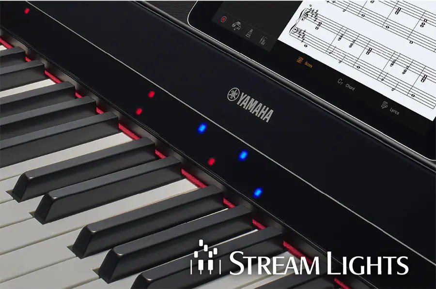 Le piano numérique Yamaha P-S500 est un piano ludique et polyvalent. Avec sa fonction Stream Lights et l’application Smart Pianist, il vous montre quelles notes jouer, vous aidant ainsi pour l’apprentissage du piano Le P-S500 emmène nos pianos portables dans une nouvelle direction. En intégrant de nombreuses fonctionnalités de nos Clavinovas CSP populaires dans un facteur de forme portable, nous avons créé un instrument pour les apprenants qui commencent tout juste leur voyage musical. Les Stream Lights et les styles d'accompagnement de qualité aident à accélérer l'apprentissage et à favoriser la joie de la musique tandis que la nature portable de l'instrument en fait un compagnon de confiance dans n'importe quel contexte musical. Pas seulement pour la maison, le PS500 est prêt partout où la musique vous emmène. CONTR�"LE INTUITIF AVEC VOTRE APPAREIL INTELLIGENT Connectez simplement l'instrument à un appareil intelligent et utilisez l'application Smart Pianist dédiée pour accéder à toutes les commandes de l'instrument et aux outils de configuration. Vous pouvez également profiter de fonctionnalités puissantes telles que les partitions de piano générées par l'application de vos chansons préférées qui vous aident à apprendre et à jouer. LES FLUX DE LUMIÈRES VOUS MONTRENT LE CHEMIN Les lumières rouges et bleues au-dessus de chaque touche vous indiquent quelles notes jouer et quand les jouer. Cette fonctionnalité extraordinaire vous aide à apprendre à jouer et à pratiquer, sans jamais avoir appris à lire la musique, ce qui rend l'apprentissage plus amusant que jamais ! JOUEZ VOS FAVORIS PERSONNELS À PARTIR DE LA BIBLIOTHÈQUE INTÉGRÉE L'instrument dispose de 403 chansons intégrées couvrant un large éventail de genres, des chansons pop aux pièces classiques. Vous pouvez jouer les mélodies avec le soutien d'un arrangement de groupe complet. La puissante fonction Audio to Score crée automatiquement des partitions d'accompagnement au piano à partir de vos chansons audio préférées afin que vous puissiez jouer avec les enregistrements originaux. Le piano numérique Yamaha P-S500 est un piano intelligent qui peut vous montrer quelles touches jouer à l'aide de la fonction unique Stream Lights. Entièrement intégré à l'application Smart Pianist, le P-S500 est sûr de vous aider à progresser dans votre voyage musical. Compatible avec l'application Smart Pianist installée sur un appareil intelligent La fonction Stream Lights vous aide à jouer même si vous ne pouvez pas lire la notation musicale Profitez de jouer avec les 403 chansons prédéfinies, couvrant un large éventail de genres, de la musique pop à la musique classique La fonction Audio To Score convertit vos chansons audio préférées en partitions d'accompagnement au piano Voix authentiques de piano à queue de concert Yamaha CFX & Bösendorfer Imperial Modélisation par résonance virtuelle (VRM) Clavier GHS pondéré de 88 notes Grande variété de 660 voix d'instruments de haute qualité, y compris des voix Super Articulation Fonctions d'accompagnement automatique intégrées avec 370 styles Entrée microphone et harmonie vocale automatique Enregistrement Audio et MIDI Le P-S500 vous permet d'enregistrer vos propres performances dans deux formats différents : audio et MIDI. L'enregistrement audio vous permet de capturer votre jeu simplement, et ensuite de l’écouter sur votre smartphone ou votre tablette. L'enregistrement MIDI, quant à lui, vous permet d'enregistrer jusqu'à 16 pistes, avec des parties main gauche et main droite séparées ou des arrangements multi-instrumentaux complexes.