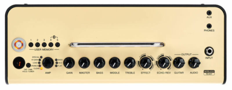 Modélisations fidèles d’amplis à lampes et d’effets incontournables 15 modèles d’amplis guitare, 3 modèles d’amplis basse, 3 modèles de micros pour guitare électro-acoustique et mode « flat » pour brancher tous vos autres instruments Connectivité Bluetooth pour diffuser, édition via l’application THR Remote Récepteur sans fil intégré compatible avec l’émetteur optionnel Line 6 Relay G10T Alimentation sur batterie rechargeable pour vous accompagner partout (5h d'autonomie) Audio Hi-Fi grâce à la technologie Extended Stereo Interface audio USB Plug-and-play pour l’enregistrement et la lecture des playbacks audio Edition et Librairie accessible depuis l’Application mobile THR Remote. Combo guitare à modélisation Récepteur sans fil intégré compatible avec l'émetteur Line 6 Relay G10 (optionnel non-fourni ) Batterie rechargeable intégrée 5 emplacements de mémoire Sensation de jeu et sons d'amplis à lampes réalistes Connectivités Bluetooth et USB Nouveaux modèles d'amplificateurs pour guitare et basse Modèles de microphones pour acoustique/électrique et Flat Voicings 3 modes Amp par type d'amplis: Modern, Boutique, Classic 6 effets: Chorus, Flanger, Phaser, Tremolo, Delay, Reverb Application THR Remote Editor/Librarian pour desktop et appareils mobiles 1 canal Puissance: 20 Watt Contrôles: Amp Mode, Gain, Master, Bass, Middle, Treble, Effect, Echo/Rev, Guitar Output, Audio Output Commutateurs: Memory 1-5, Tap/Tuner Entrée instrument sur Jack 6,3 mm Entrée Aux sur mini Jack 3,5 mm Sortie casque sur mini Jack stéréo 3,5 mm Port USB Dimensions: 368 x 140 x 183 mm Poids: 3,2 kg Bloc d'alimentation 15V 3A incl.