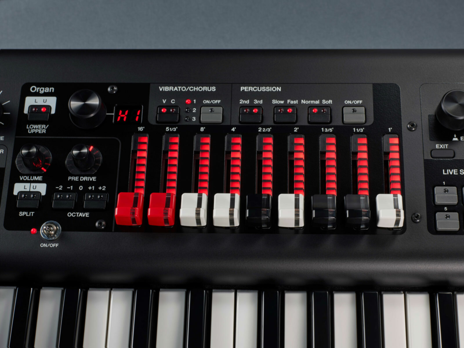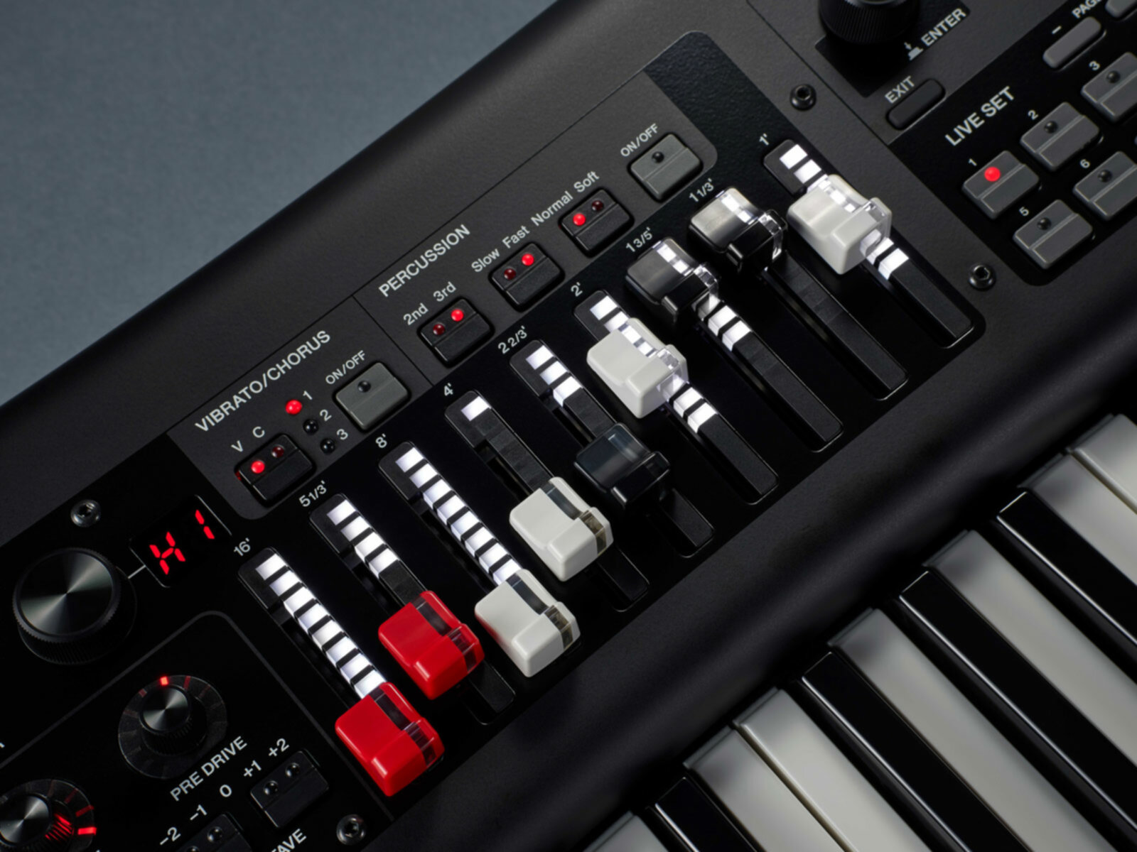 Il dispose d’un moteur d’orgue VCM exclusif avec tirettes physiques, de nombreux contrôles directs, de sons de pianos acoustiques et électriques sans compromis et d’un vrai moteur de synthèse FM.