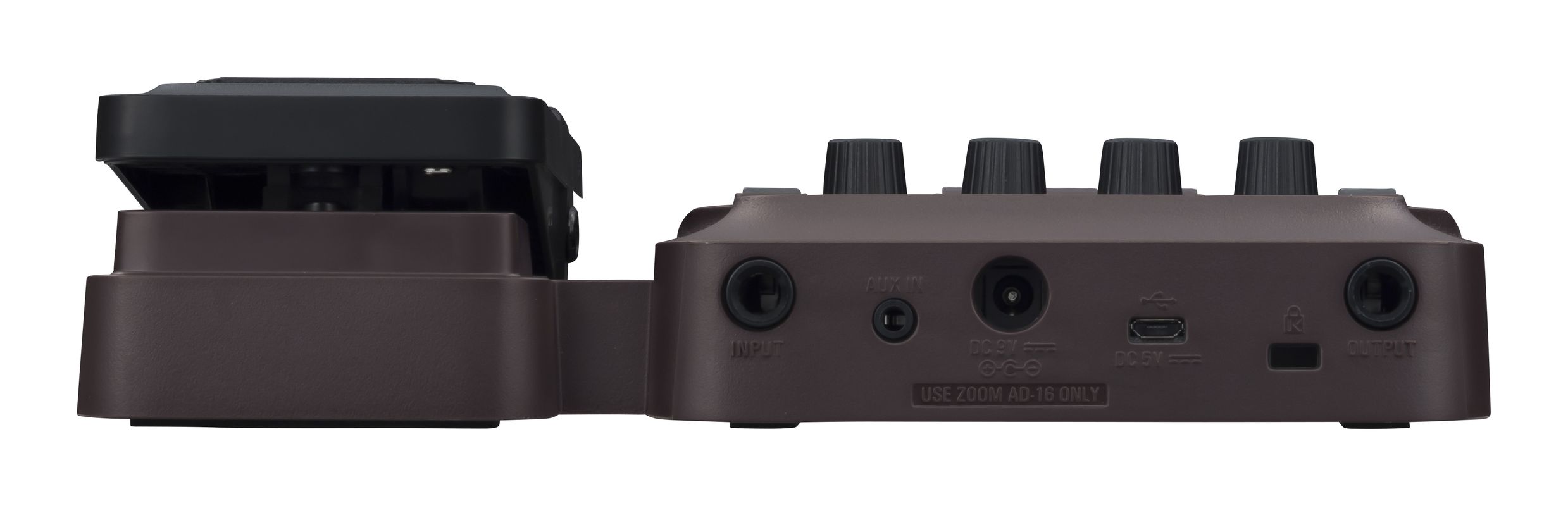 90 effets intégrés �" Pédale d’expression �" dédié aux instruments acoustiques : guitare, saxophone, trompette, violon ou harmonica �" Jusqu’à 5 effets simultanés à chainer librement �" Looper qualité CD jusqu’à 30 secondes / 64 temps avec démarrage et arrêt sans coupures �" Logiciel gratuit ZOOM Guitar Lab (Mac/Windows) permettant de gérer ses programmes, patches et effets �" 68 motifs rythmiques intégrés pouvant être utilisés avec le Looper �" 50 mémoires utilisateur �" Fonction de sauvegarde automatique �" Accordeur chromatique proposant tous les accordages de guitare standard, y compris open tunings et drops �" Fonction PRESELECT permettant de choisir un patch discrètement tout en conservant les effets en cours �" Entrée guitare jack 6,35mm pour instruments passifs ou actif �" Préampli micro MAA-1 permettant la connexion de tous type d’instruments (inclus) �" Entrée stéréo auxiliaire (pour smartphone, baladeurs numériques, etc…) sur jack 3,5mm �" Sortie sur Jack 6,35mm (compatible mono et stéréo, ampli et casque) �" Fonctionne sur 4x piles AA jusqu’à 18h d’autonomie �" Port USB permettant les mises à jour de Firmware, l’alimentation et la connexion au logiciel Guitar Lab �" Port DC 9V pour adaptateur AD-16 (en option) �" Poids : 340g �" Dimensions (mm) : 156 (L) x 130 (p) x 42 (h) �" livré avec guide rapide de l’utilisateur, liste de patches et 4x piles AA